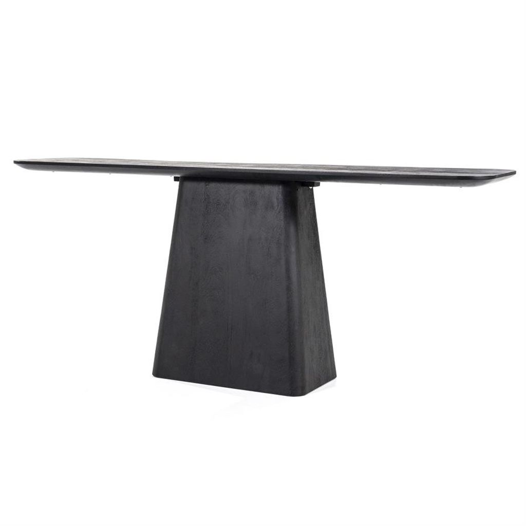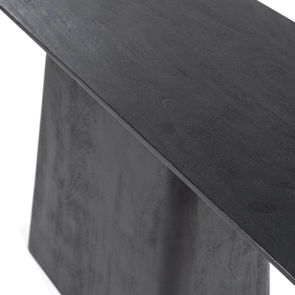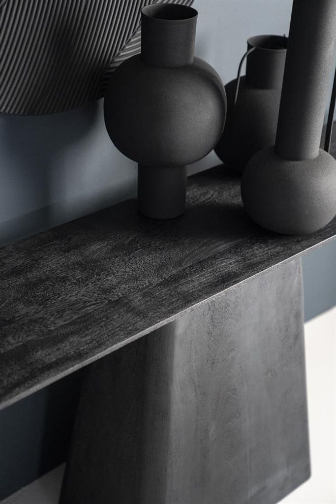 Elegant svart avlastningsbord i massiv trä med stilren design och robust konstruktion. Perfekt för moderna hem.