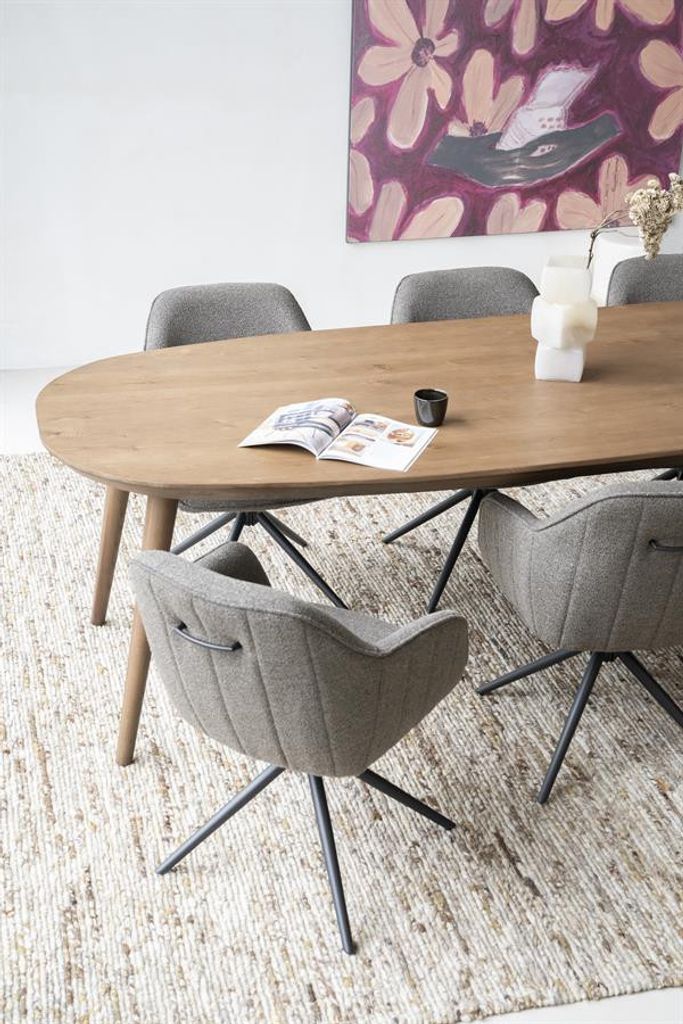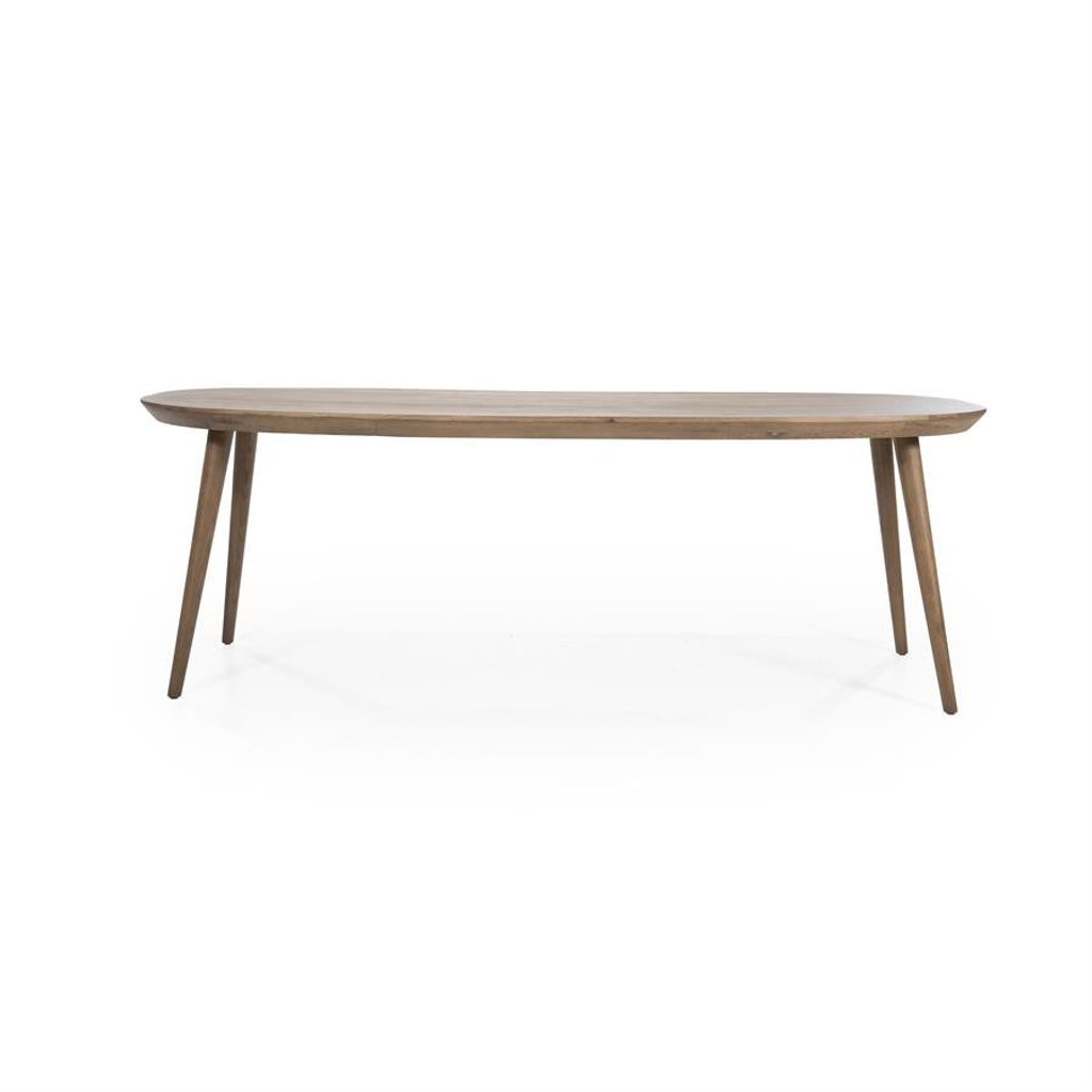 Eleonora Matbord Elijah kombinerar stil och funktionalitet i en harmonisk design. Bordet mäter 260x100 cm och har en vacker brun färg som ger en varm känsla till ditt hem. Den ovala formen och de smala benen ger ett luftigt intryck samtidigt som det erbjuder gott om plats för familj och vänner. Tillverkat i högkvalitativt trä, garanterar det en hållbar och stabil konstruktion som passar för dagligt bruk. Den tidlösa designen gör detta matbord till ett perfekt tillskott till varje modernt hem.