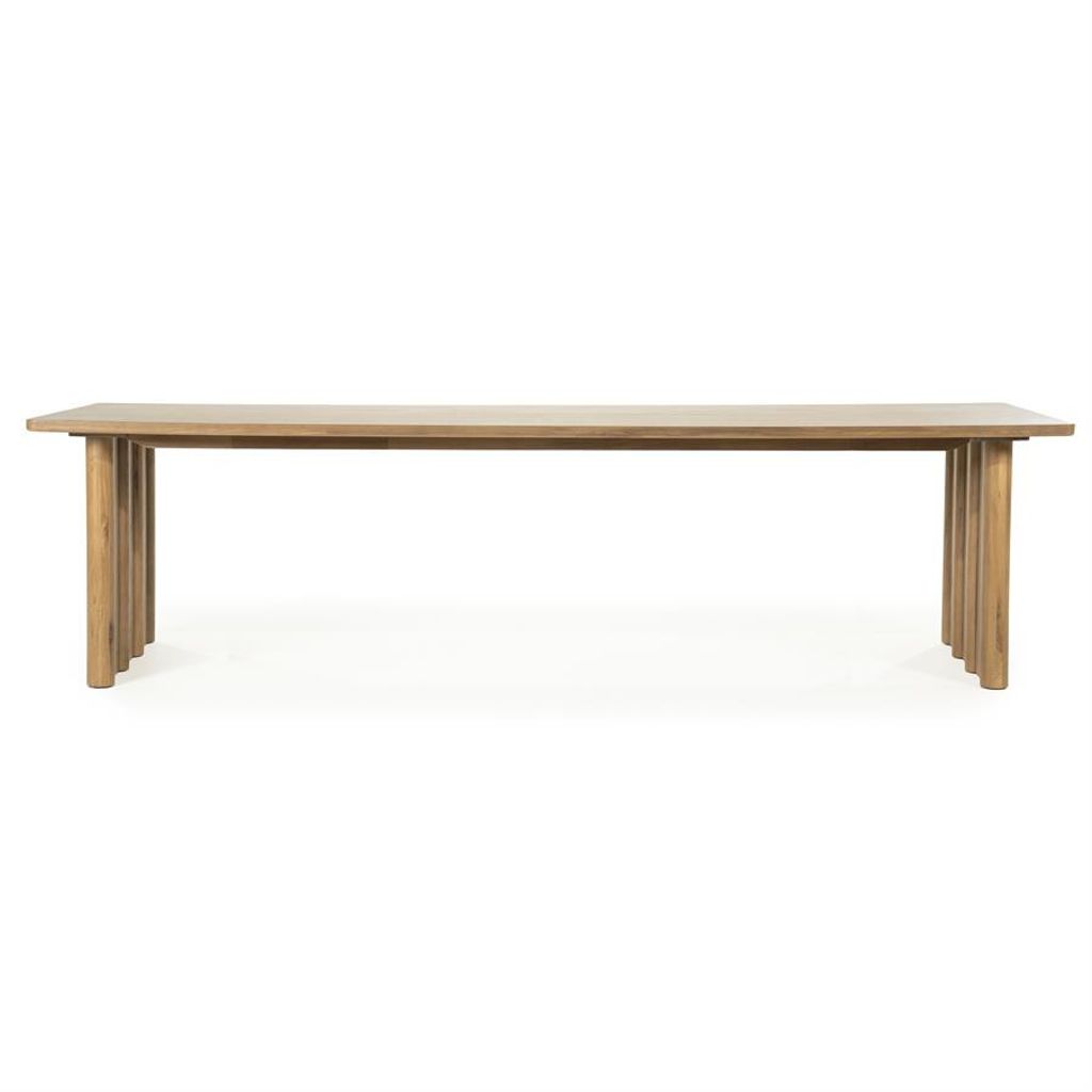Eleonora Matbord Jake är en imponerande möbel med sina generösa mått på 300x100 cm. Tillverkat av högkvalitativt brunt trä, utstrålar bordet en naturlig och tidlös charm. Den eleganta trästrukturen ger en varm känsla, medan den robusta konstruktionen säkerställer hållbarhet. Bordets design med mjuka hörn och solida ben i rundade former ger ett både modernt och klassiskt uttryck. Idealisk för att samla familj och vänner för minnesvärda måltider och tillställningar.