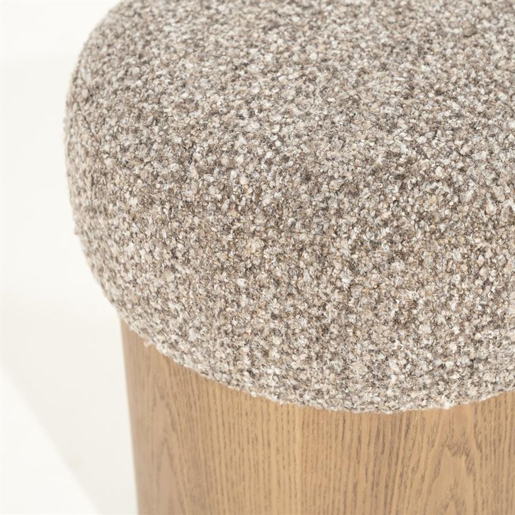 Eleonora Poef George i taupe är en utsökt kombination av stil och funktion. Den mjuka, texturerade tygklädseln i dämpad taupe ger en känsla av lyx och komfort, medan den robusta träsockeln tillför en naturlig elegans. Denna poef är inte bara en estetisk höjdpunkt utan fungerar även som en extra sittplats eller avlastningsyta i ditt hem. Perfekt för att komplettera både modern och klassisk inredning.