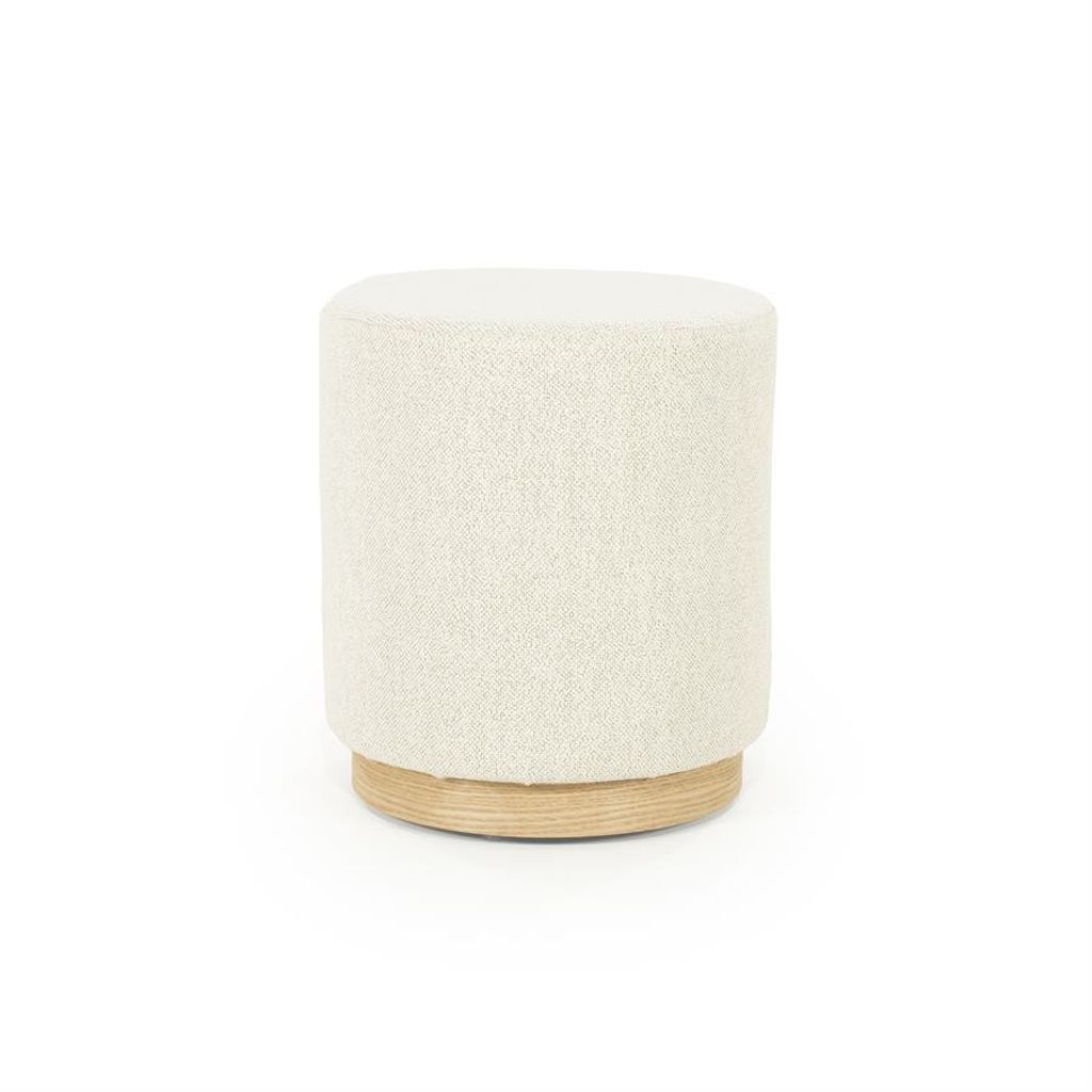 Designen inkluderar en stabil bas av ljus ek som inte bara ger stöd utan även tillför en naturlig och modern atmosfär. Den skandinaviska stilen framhävs genom den enkla men eleganta formen. Poufen fungerar utmärkt som extra sittplats eller som en dekorativ detalj i vardagsrummet, sovrummet eller hallen. Tack vare den kompakta storleken är den idealisk för mindre utrymmen utan att kompromissa med stil eller komfort.