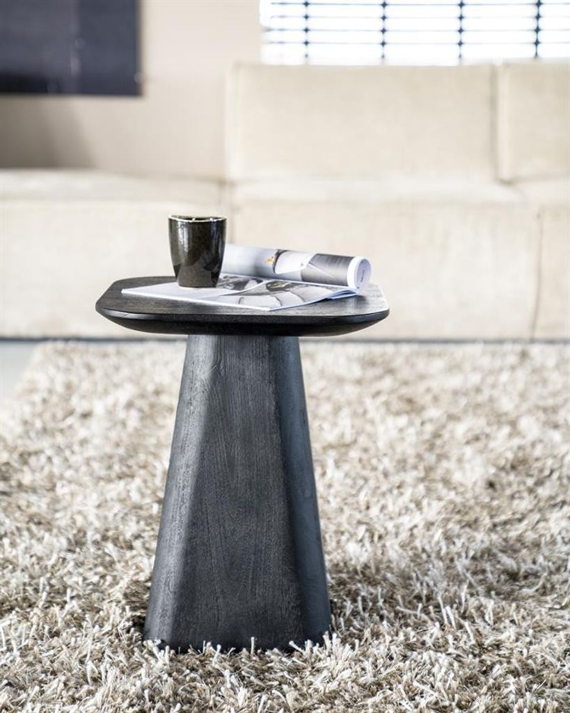 Elegant och stilrent sidobord i svart trä med en konisk design som ger ett modernt intryck. Perfekt för alla rum.