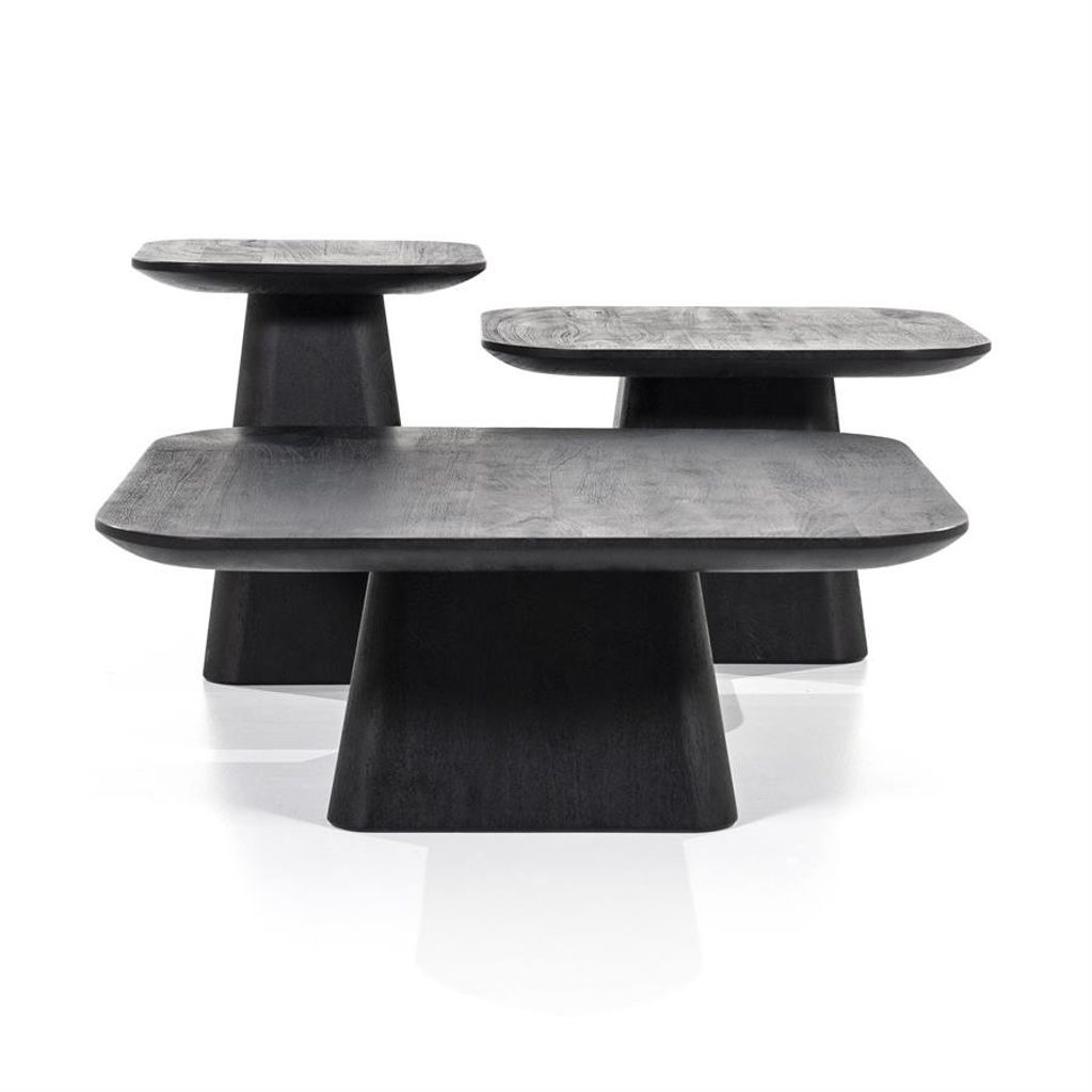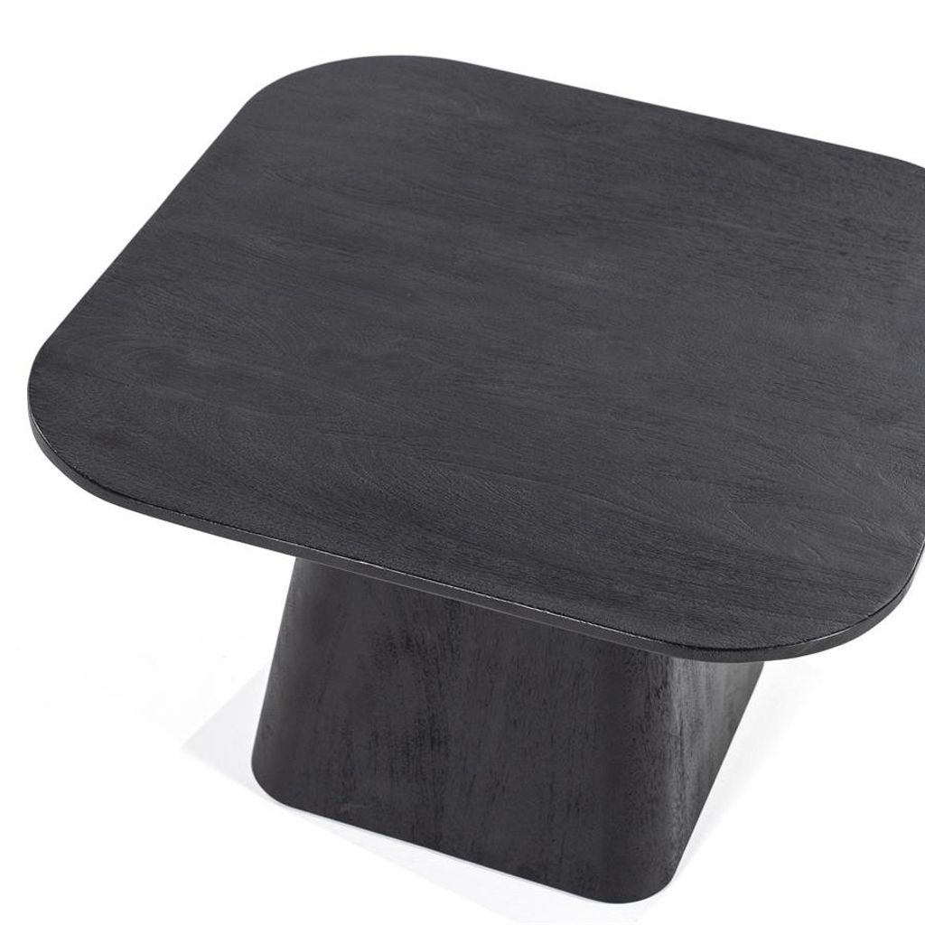 Stilrent och robust sidobord i svart trä, med en elegant kvadratisk design som kombinerar funktionalitet och modern estetik.