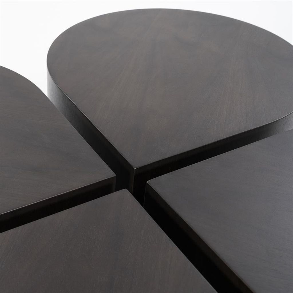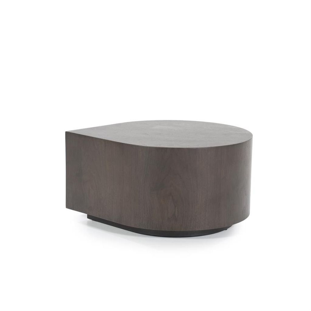 Stilrent och funktionellt sidobord i brun finish, perfekt för modern inredning. Unik droppformad design.