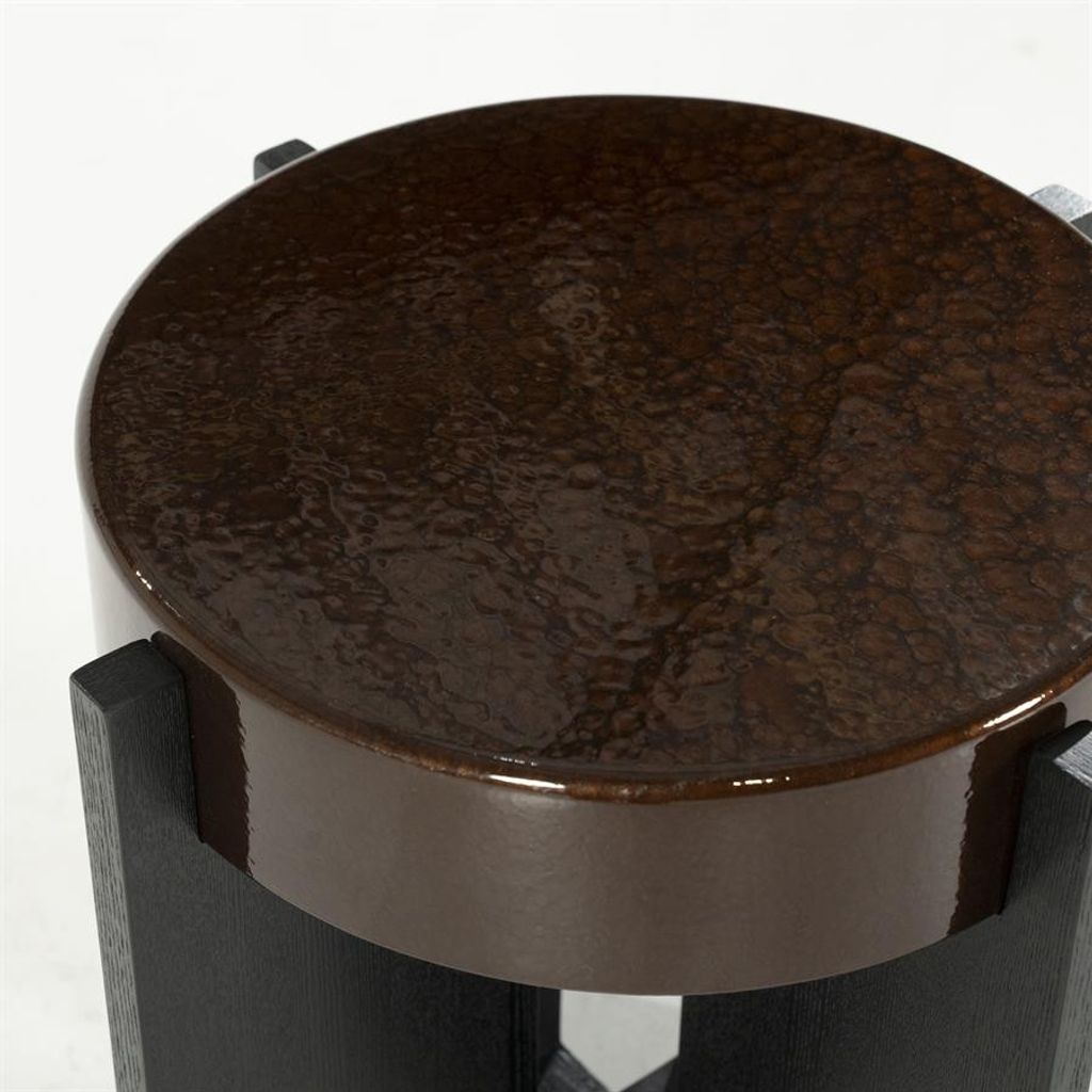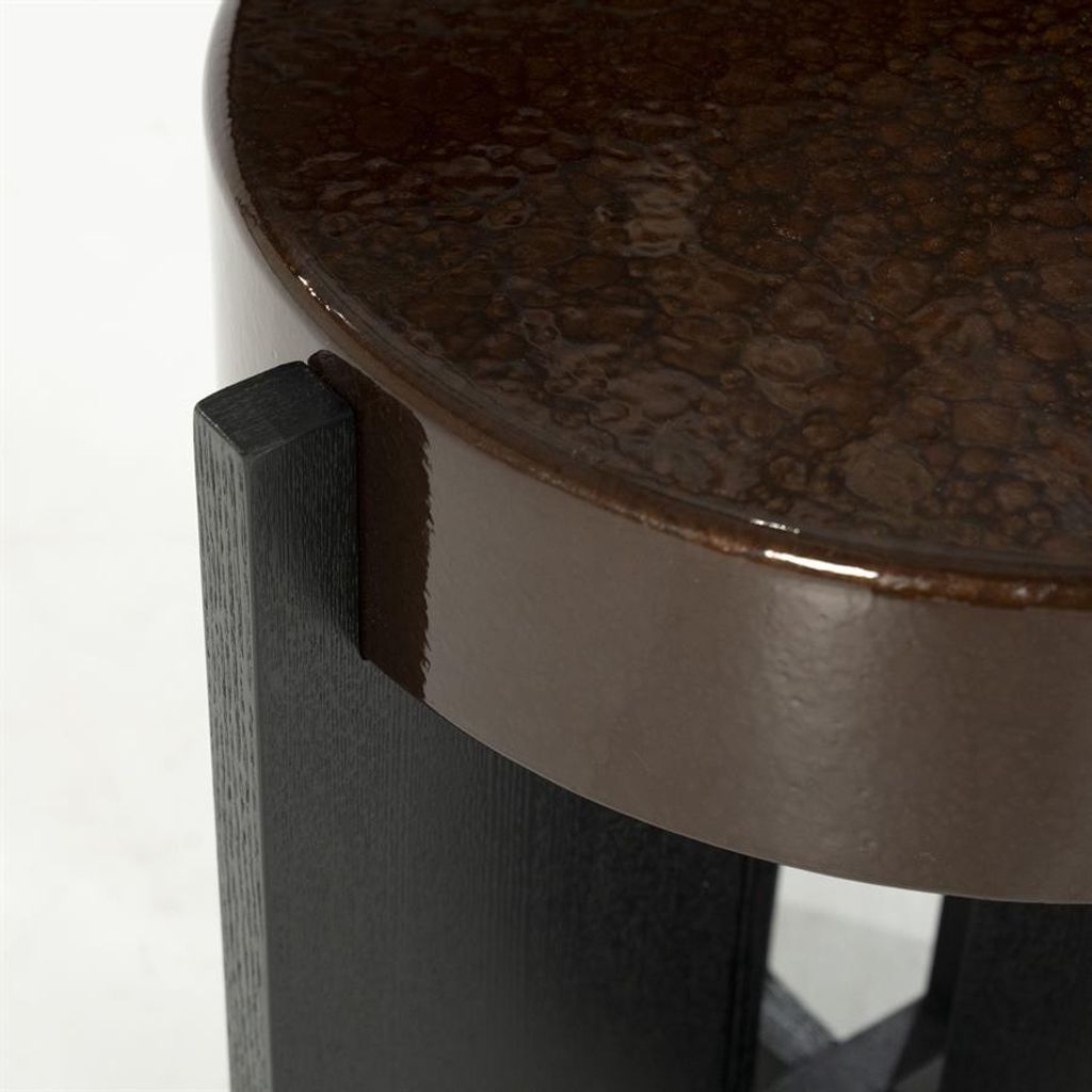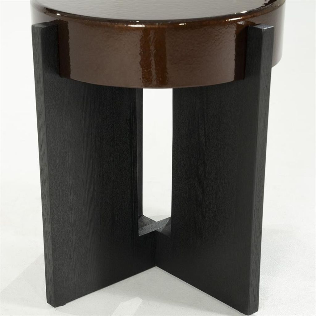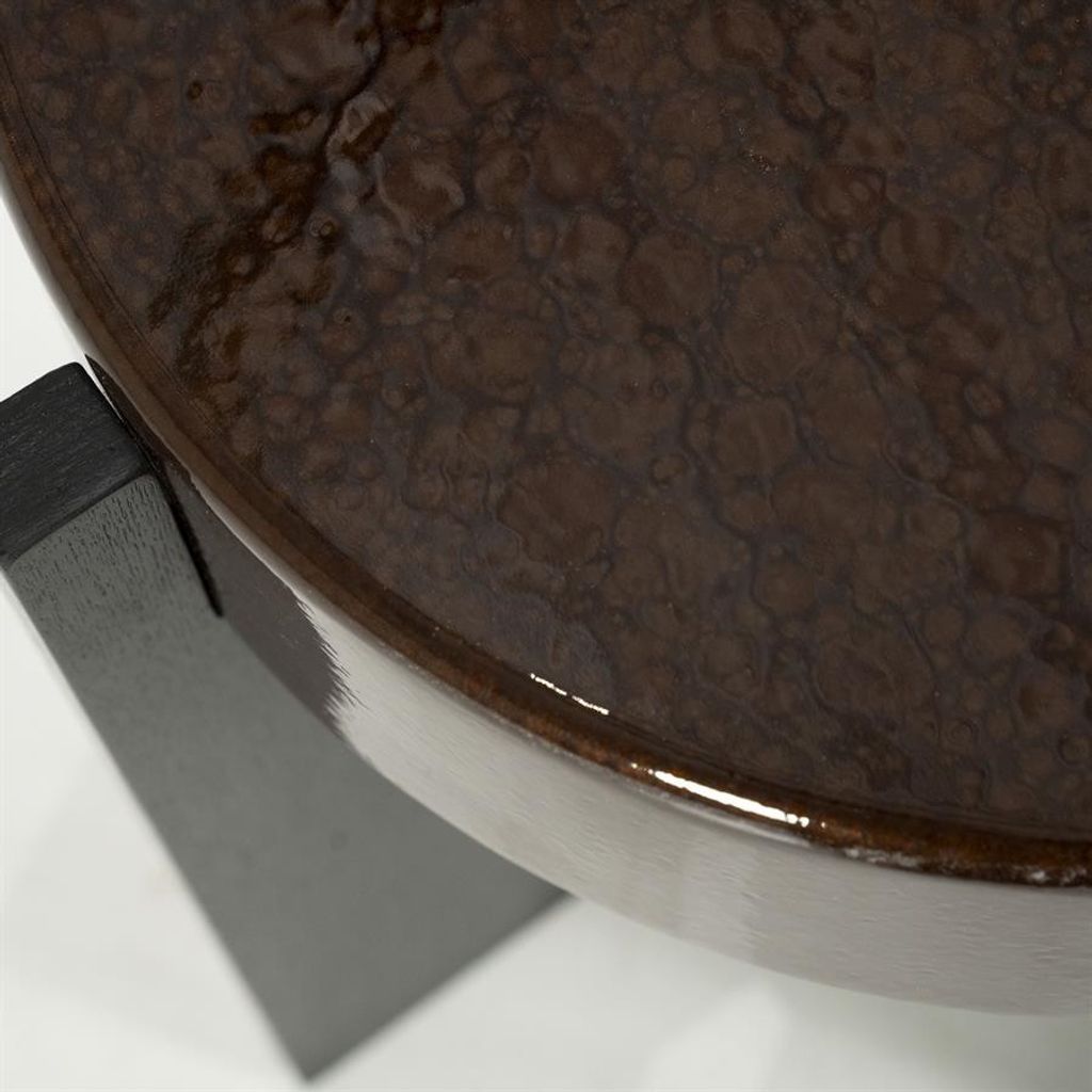 Elegant sidobord med brun yta och robust design. Perfekt för modern inredning.