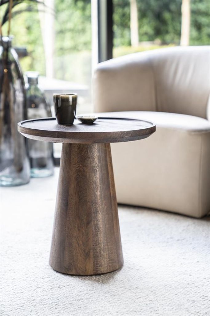 Elegant brun sidobord i robust trä, perfekt för att skapa en stilren atmosfär i ditt hem.
