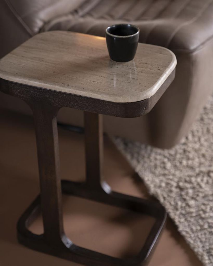 Upptäck Eleonora Sidobord Tyler Brun, ett sidobord som förenar sofistikerad design med funktionalitet. Dess eleganta bordsskiva i brun travertin erbjuder en naturlig och varm känsla som kompletterar alla interiörer. Den robusta metallramen i mörk finish ger både stabilitet och en tidlös stil, vilket gör bordet lämpligt för såväl moderna som klassiska miljöer.