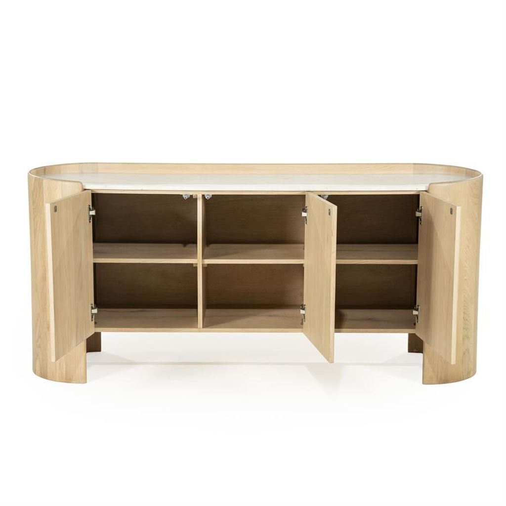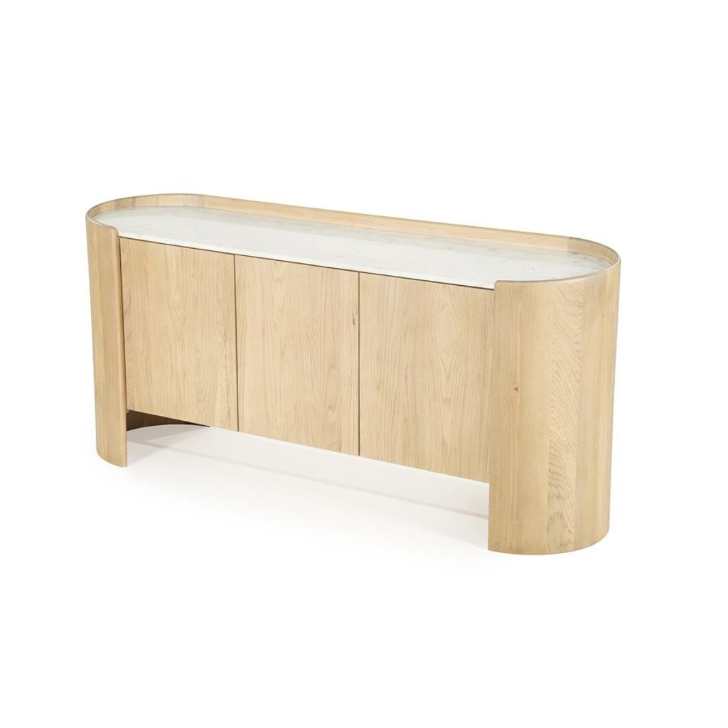 Stilrent sideboard i ek och marmor, perfekt för att förnya ditt hem med elegans och funktionalitet.