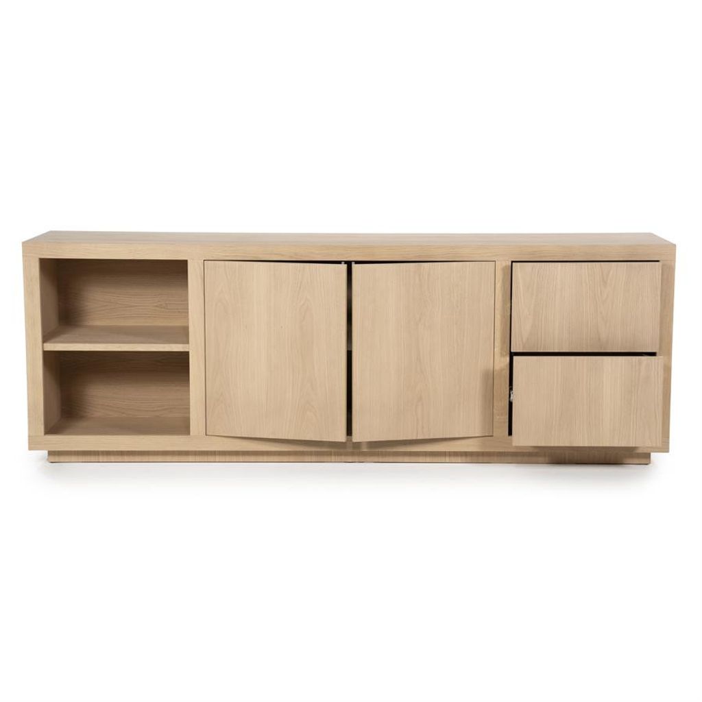 Stilrent sideboard i naturlig ek med generöst förvaringsutrymme och eleganta linjer, perfekt för både vardagsrum och matsal.