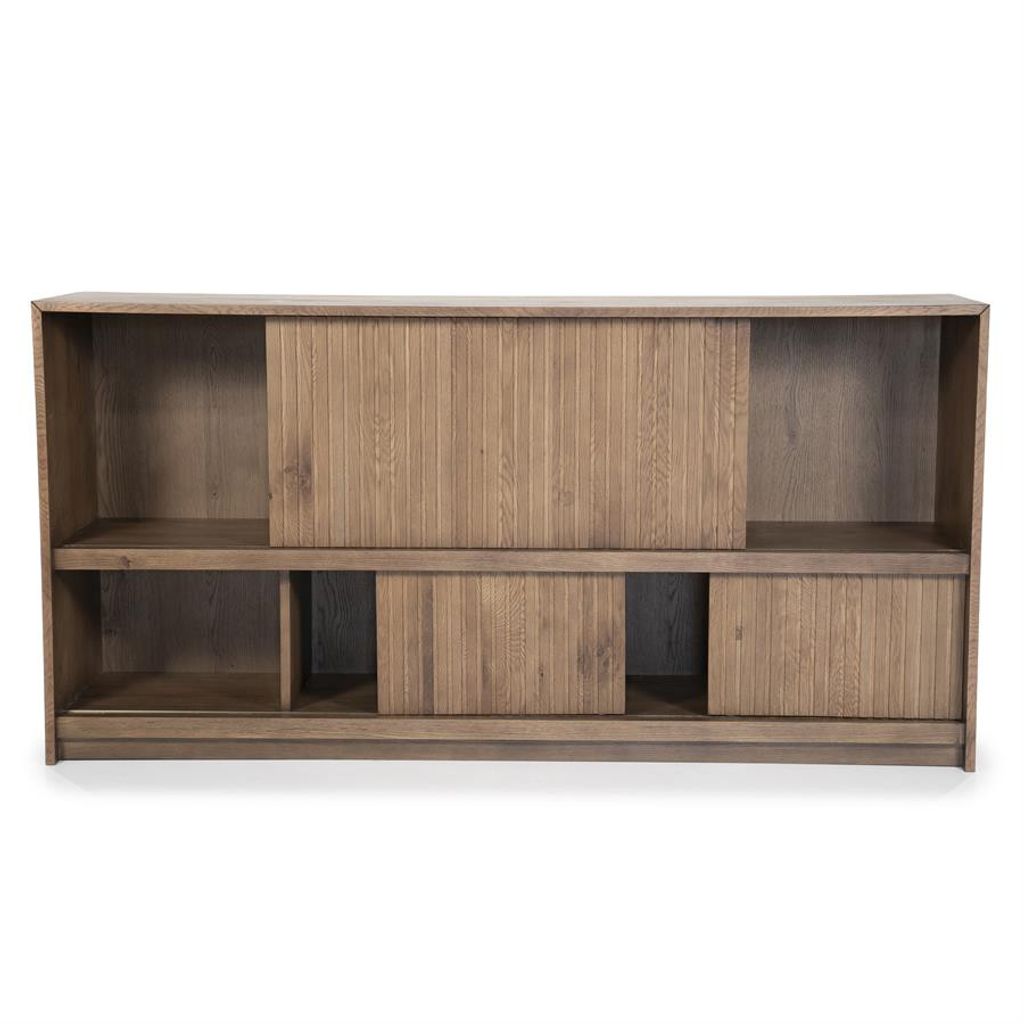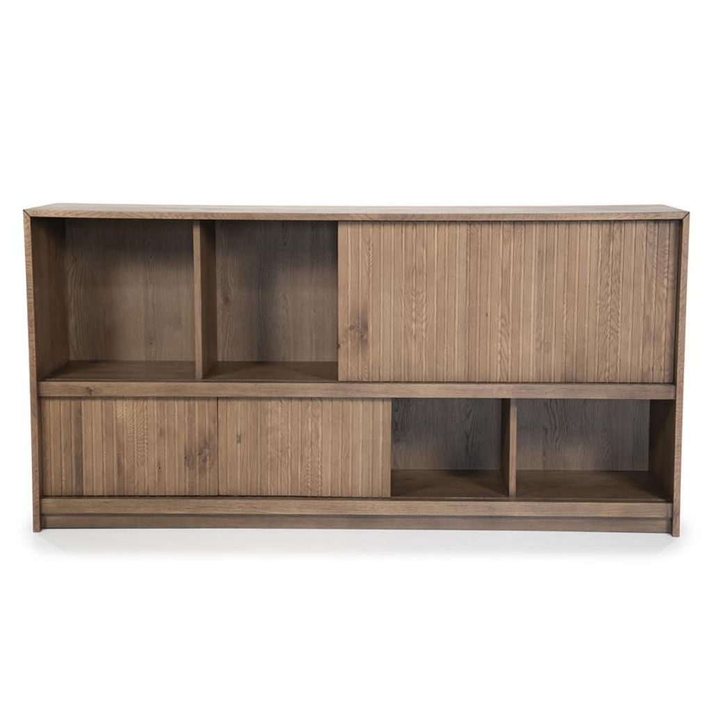 Stilrent sideboard i brun ek med ribbade detaljer och smart förvaring, perfekt för ett modernt hem.