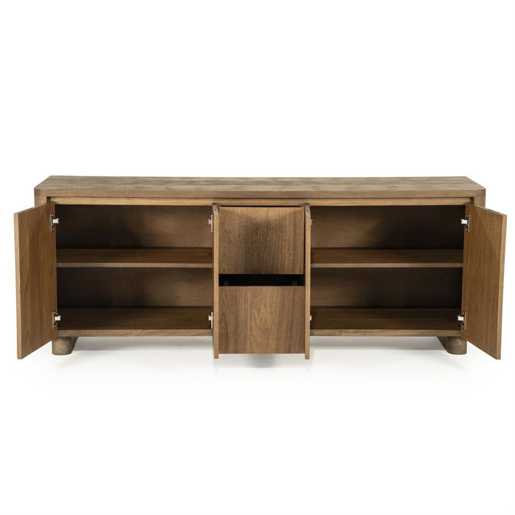Eleonora TV-bänk Edward är ett stilfullt inslag i ditt vardagsrum. Tillverkad i robust, brunt trä, kombinerar den funktionalitet med modern estetik. Bänken erbjuder gott om förvaringsutrymme med flera skåp och lådor som hjälper dig att hålla ordning på dina elektroniska enheter och tillbehör. Den eleganta designen gör att den smälter in i de flesta inredningsstilar, medan de smarta handtagen ger en diskret och stilren look. Med en längd på 160 cm är denna TV-bänk en perfekt lösning för både mindre och större utrymmen.