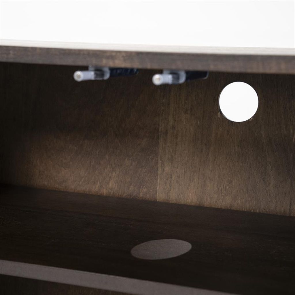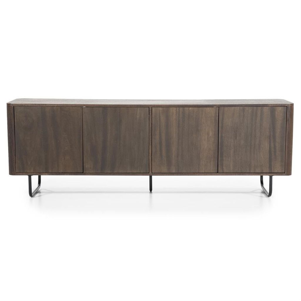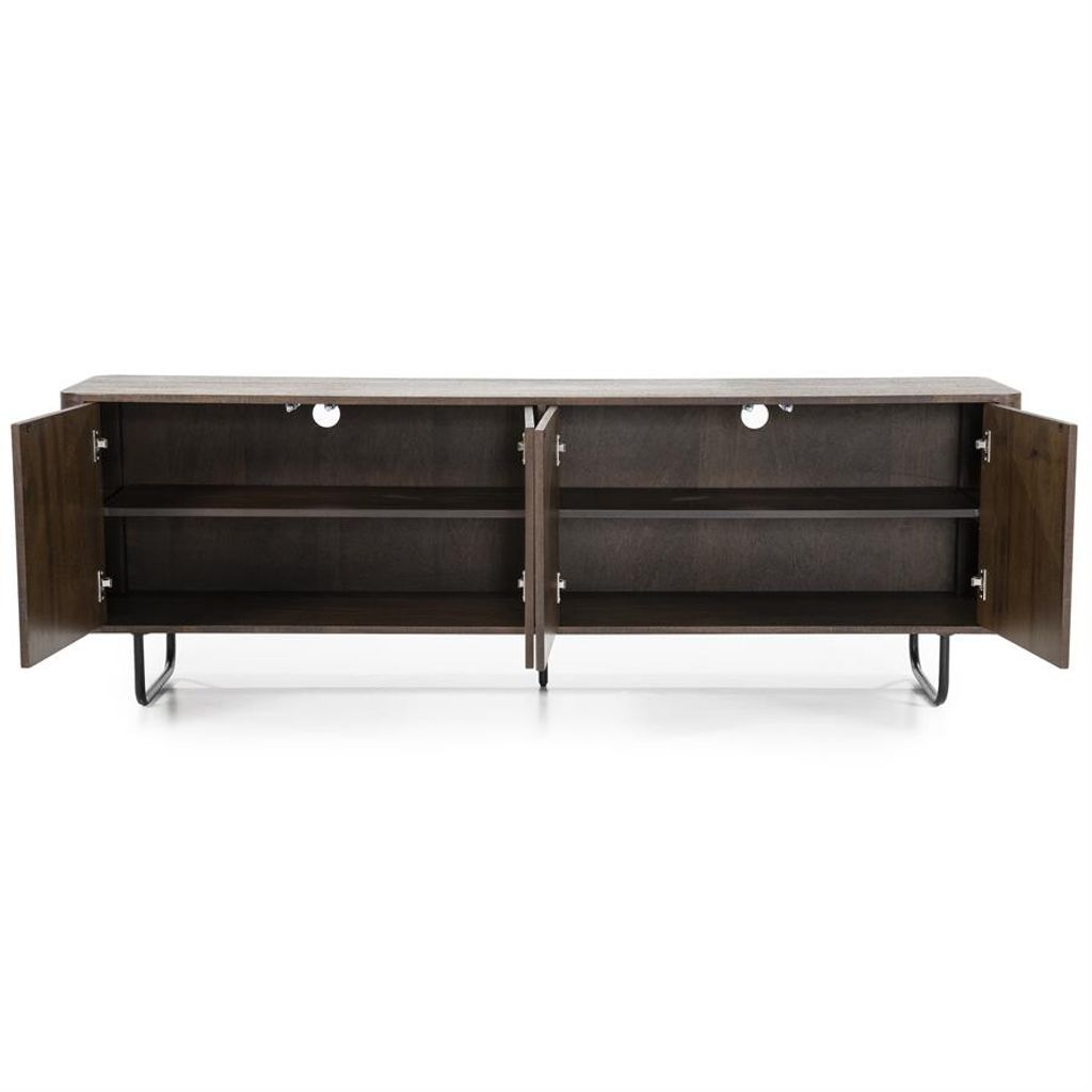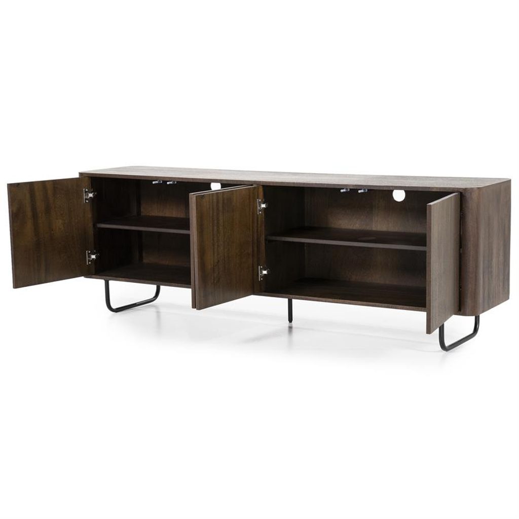 Elegant TV-bänk i brun träfinish med stilrena linjer och praktisk förvaring, perfekt för det moderna hemmet.