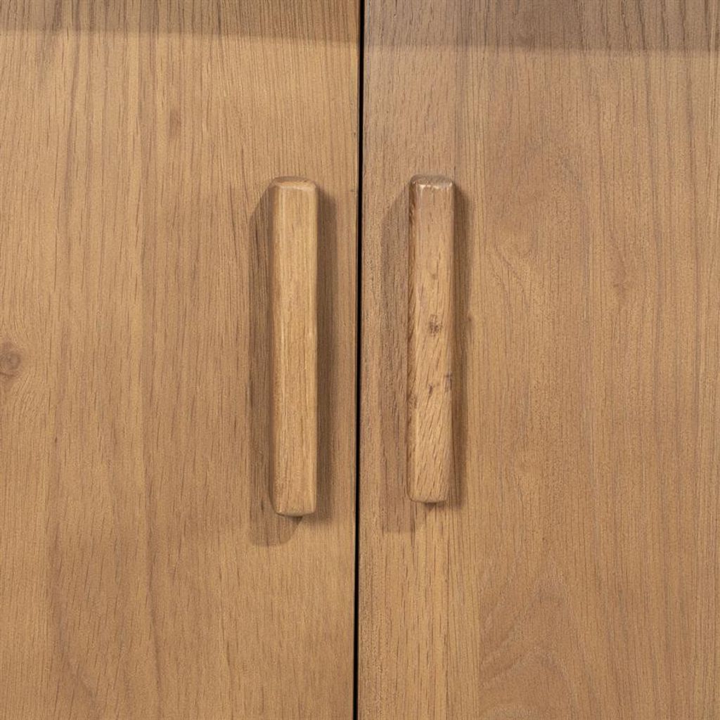 Eleonora TV-bänk Josh på 180 cm är en sofistikerad möbel i brun träfinish som kombinerar stil med funktionalitet. Dess rundade kanter och släta yta ger ett inbjudande och modernt intryck. Bänken erbjuder generös förvaring med sina praktiska skåp, vilket gör den till ett utmärkt val för att hålla vardagsrummet organiserat. Med gedigna gångjärn och hållbara material är denna TV-bänk både stabil och tilltalande, vilket gör den till en perfekt mittpunkt i ditt hem.