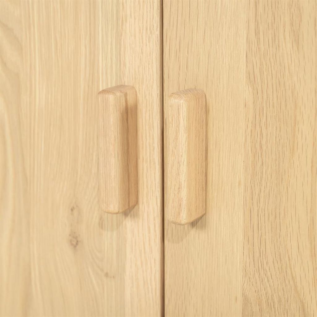 Elegant och funktionell TV-bänk i naturlig ek. Rymlig design med praktisk förvaring och stilfullt hantverk.
