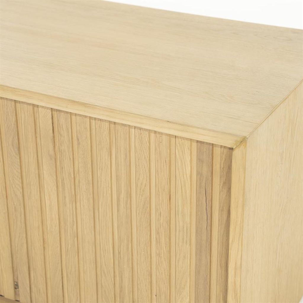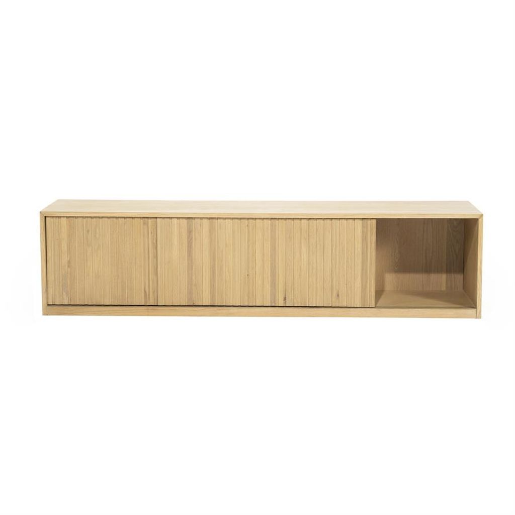 Elegant TV-bänk i naturlig ek med stilrena linjer, perfekt för ett modernt hem.