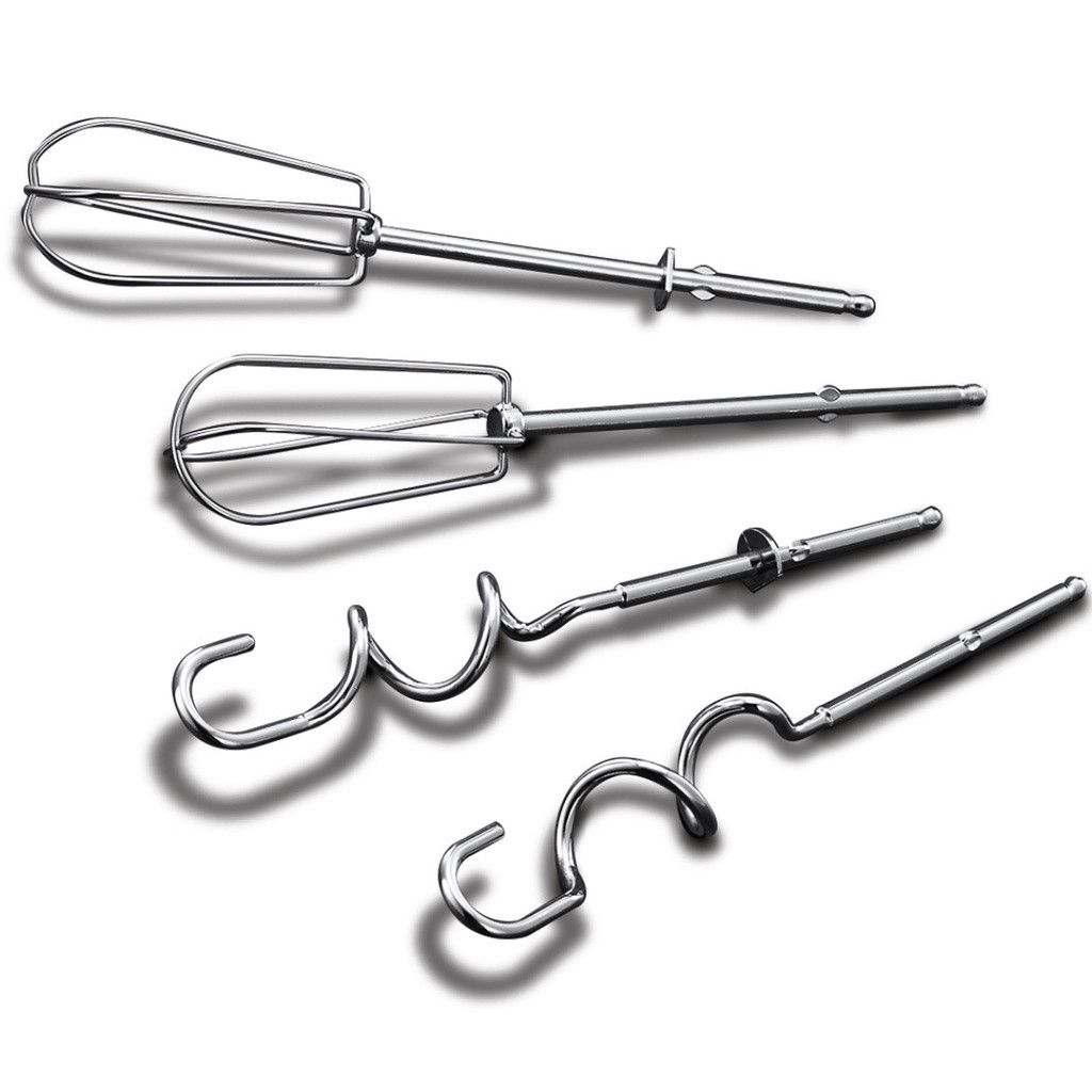 Med fem olika hastighetslägen och en kraftfull turbofunktion får du alltid rätt konsistens oavsett om du vispar äggvita, blandar smet eller knådar deg. De rostfria visparna och degkrokarna ingår, och kan enkelt tas bort med en knapptryckning. Tack vare det ergonomiska handtaget ligger vispen bekvämt i handen även vid längre användning.