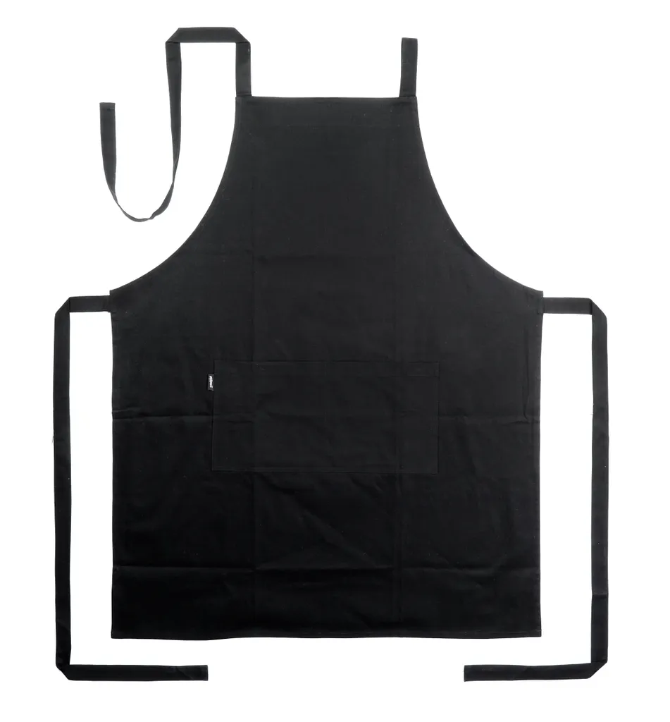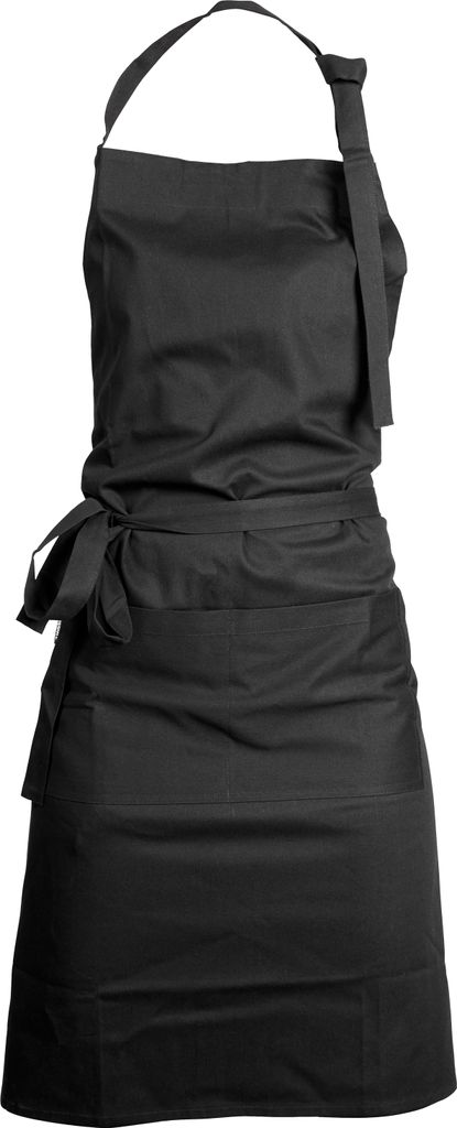 Svart brötlappsförkläde med praktisk och rymlig ficka. Förklädet är tillverkad i 100 % bomull och är helt fri från gifter och kemikalier certifierad av STANDARD 100 by OEKO-TEX ®. Bröstllappsförklädet är tvättåligt och slitstarkt vilket gör att det passar utmärkt inom den professionella verksamheten.