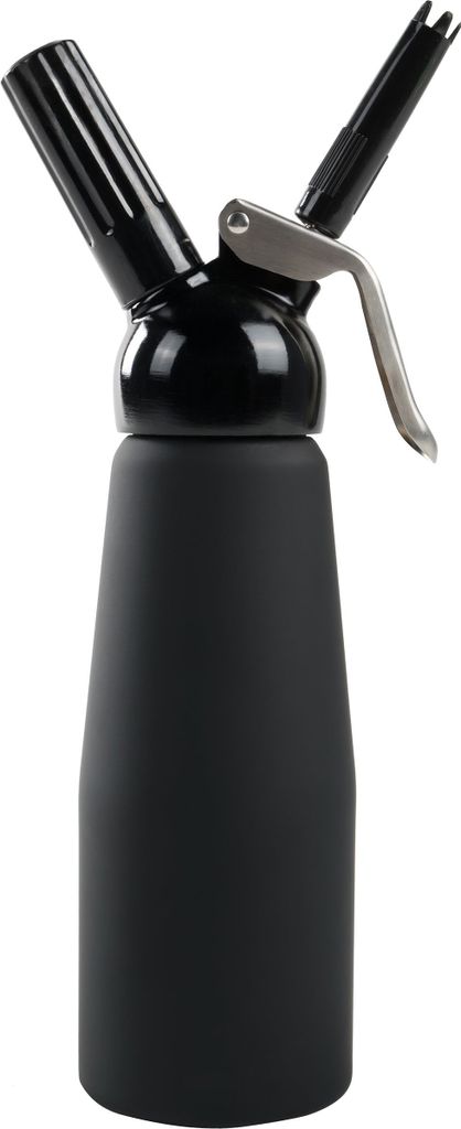 Praktisk svart gräddsifon 0,5 L i rostfritt stål som gör grädde effektivt och enkelt utan att vispa. En gräddsifon som tål upp till 75 grader vilket resulterar i att den även är lämpad för att hantera såser eller liknande.