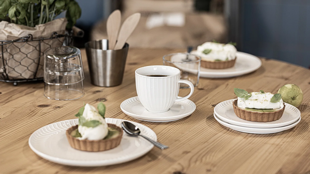 Kaffekopp i serien Phoenix. Koppen är tillverkad av aluminium förstärkt porslin som bränns vid högre temperatur för bättre stöttålighet och längre hållbarhet. Koppen är dekorerad med ränder i relief.