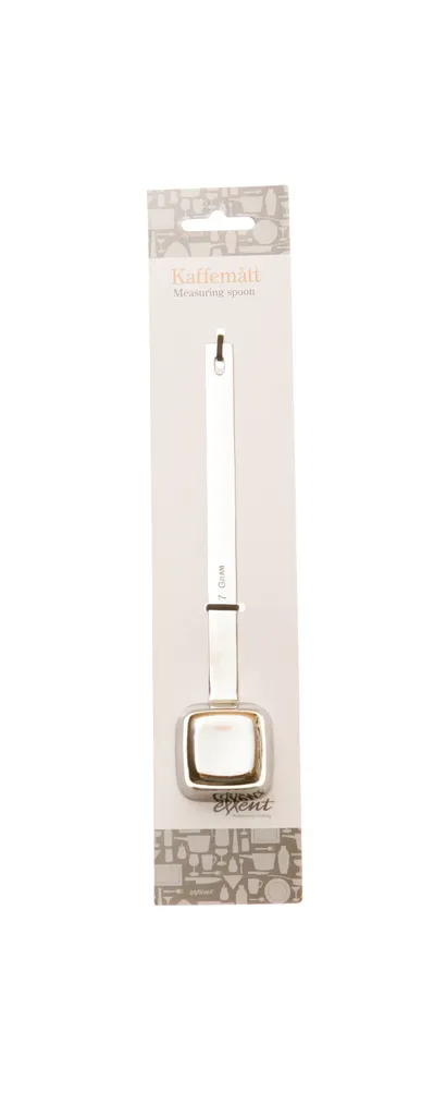 Kaffemått i rostfritt 18/0 stål som håller 7 gram. Måttet passar utmärkt att använda i alla möjliga sammanhang när det ska avnjutas en kopp kaffe. Kaffemåttet har ett praktiskt hål i skaftet för enkel upphängning och tål dagligt slitage.