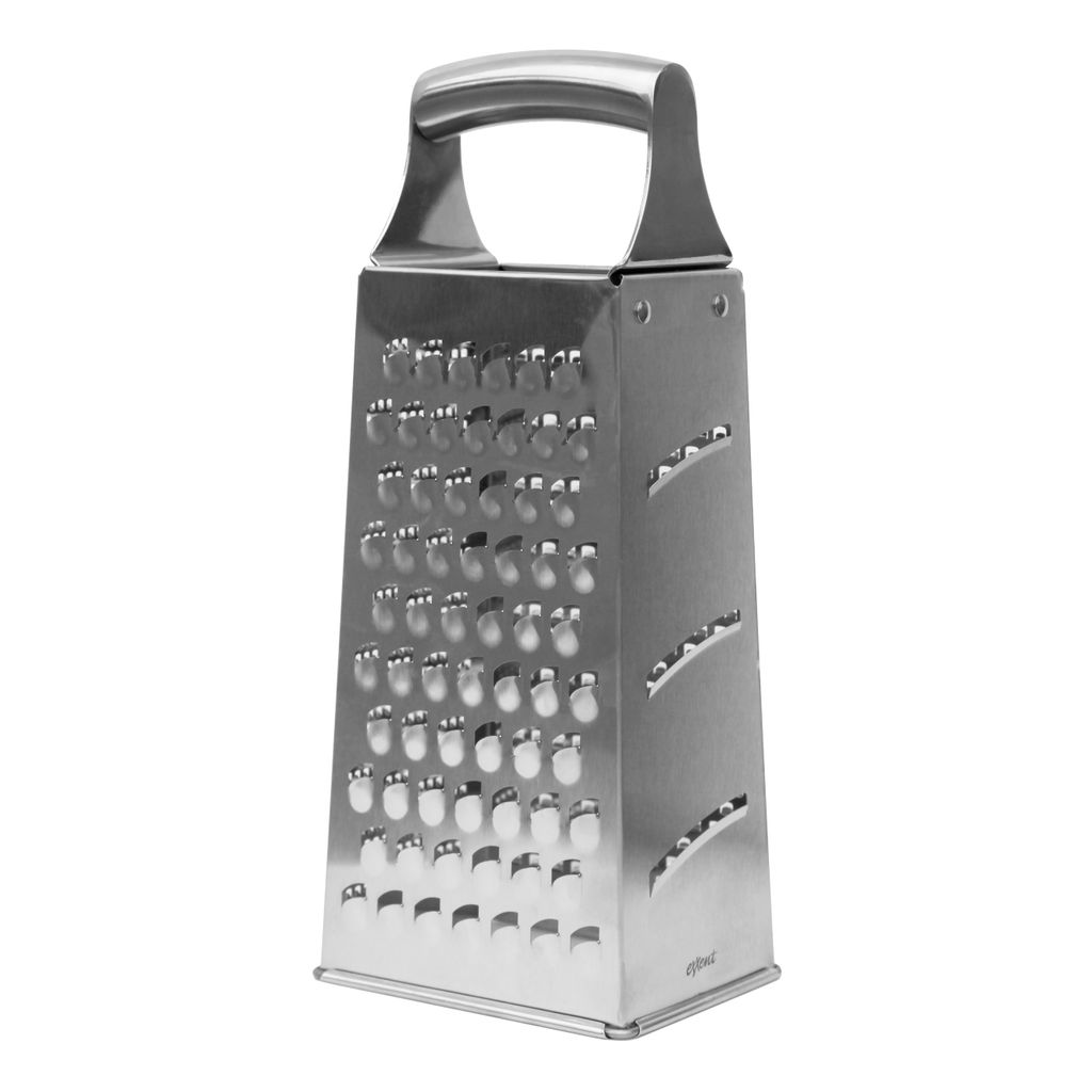 Hållbar rivjärn i rostfritt 18/0 stål med etsade skär som håller skärpan längre. Rivjärnet har 4 olika rivytor som ger möjligheterna att riva fint, medium, grovt eller hyvla/skiva. Rivjärnet har ett runt handtag för en stadig användning.