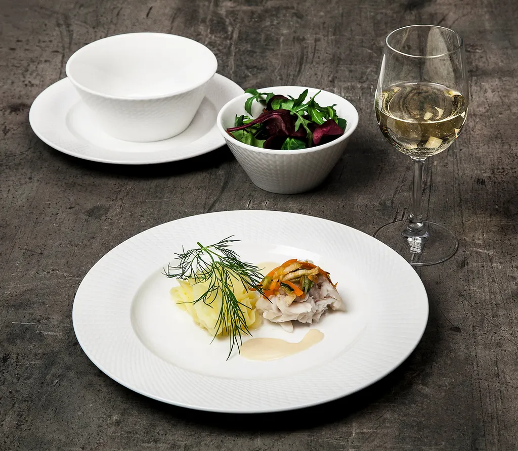 Victoria är en klassisk serie med en vackert mönstrad utsida. Den tidlösa designen gör att serien passar lika väl i hotellrestaurangen som på det mindre kaffét. Tillverkad i förstärkt benporslin med hög kantstötningsresistens. Serien innehåller fler olika storlekar och produkter för en komplett servis.