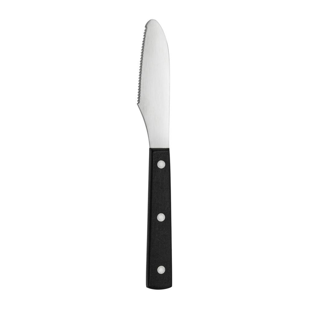 Klassisk smörkniv med handtag tillverkat i POM (Polyoximetylen) som är ett slitstark, hållbart och beständigt material.