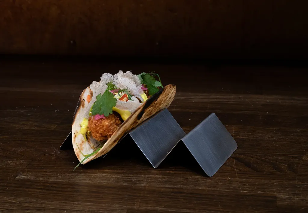 Praktiskt tacoställ med 2 fack som gör det enkelt att servera dina gäster olika sorters tacos, steam buns, wraps, korv med bröd och mycket annat Tillverkad i rostfritt stål som gör den väldigt tålig och hållbar.