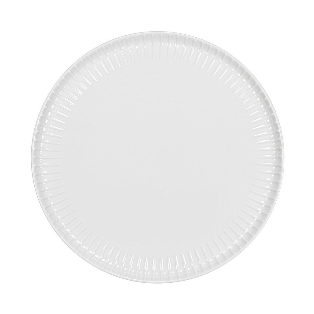 Tallrik i serien Phoenix. Tallriken är tillverkad av aluminium förstärkt porslin som bränns vid högre temperatur för bättre stöttålighet och längre hållbarhet. Tallriken är dekorerad med ränder i relief.