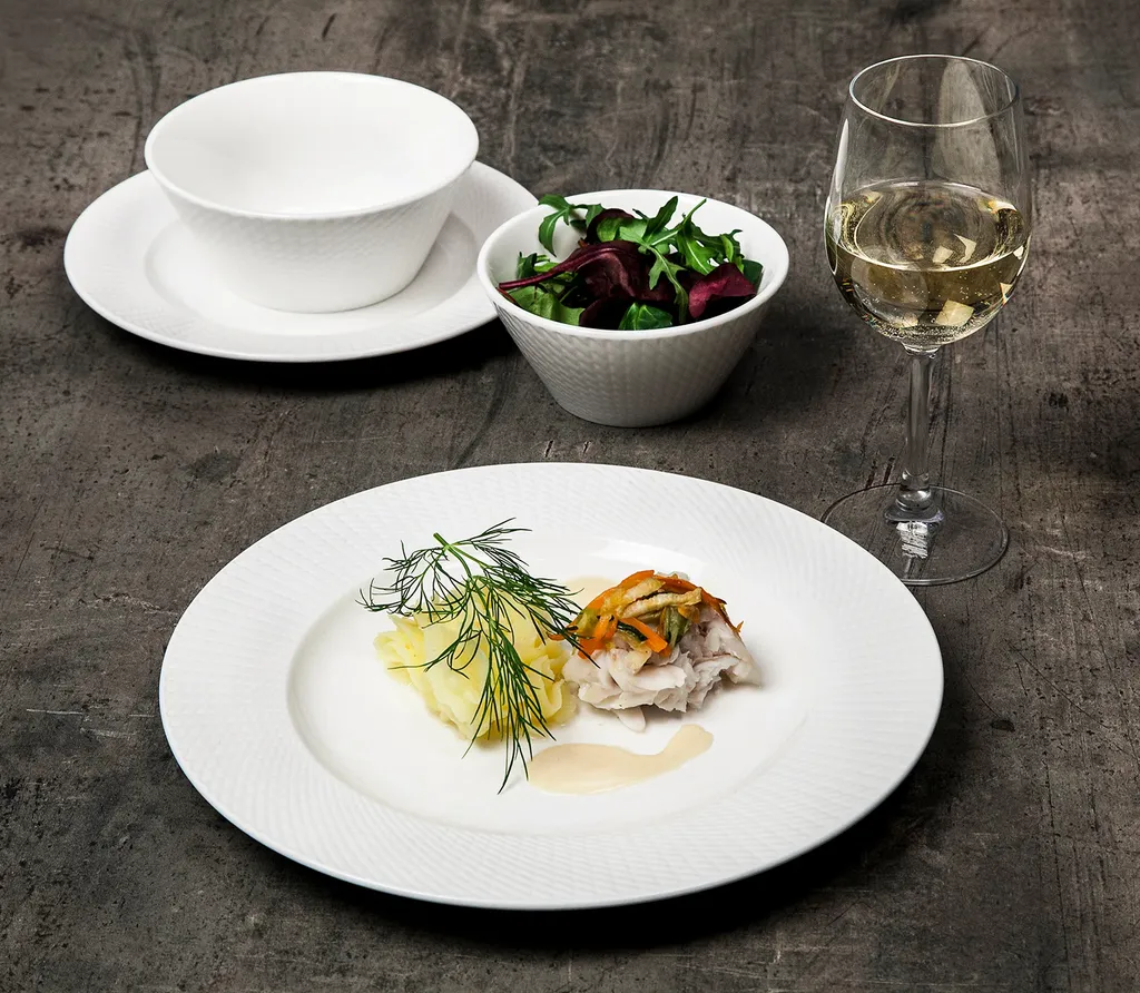 Victoria är en klassisk serie med en vackert mönstrad bräm. Den tidlösa designen gör att serien passar lika väl i hotellrestaurangen som på det mindre kaffét. Tillverkad i förstärkt benporslin med hög kantstötningsresistens. Serien innehåller fler olika storlekar och produkter för en komplett servis.