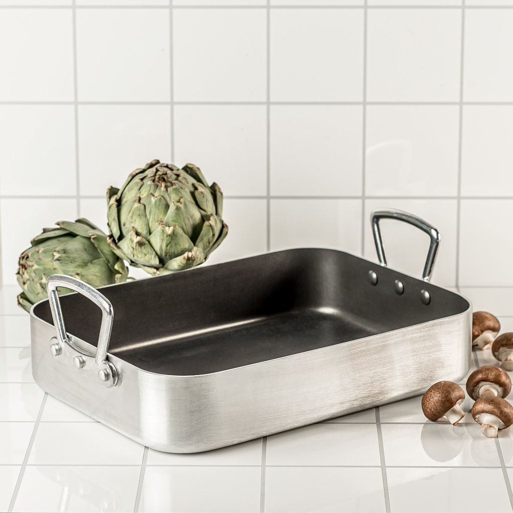 Ugnsform i aluminium med non stick beläggning med praktiska handtag som underlättar förflyttningen från ugnen. Dess form och tålighet passar utmärkt för att bereda kött-och fågelrätter i ugnen. Framtagen för att matcha det höga krav som ställs på ett professionellt kök, tål att användas dagligen.