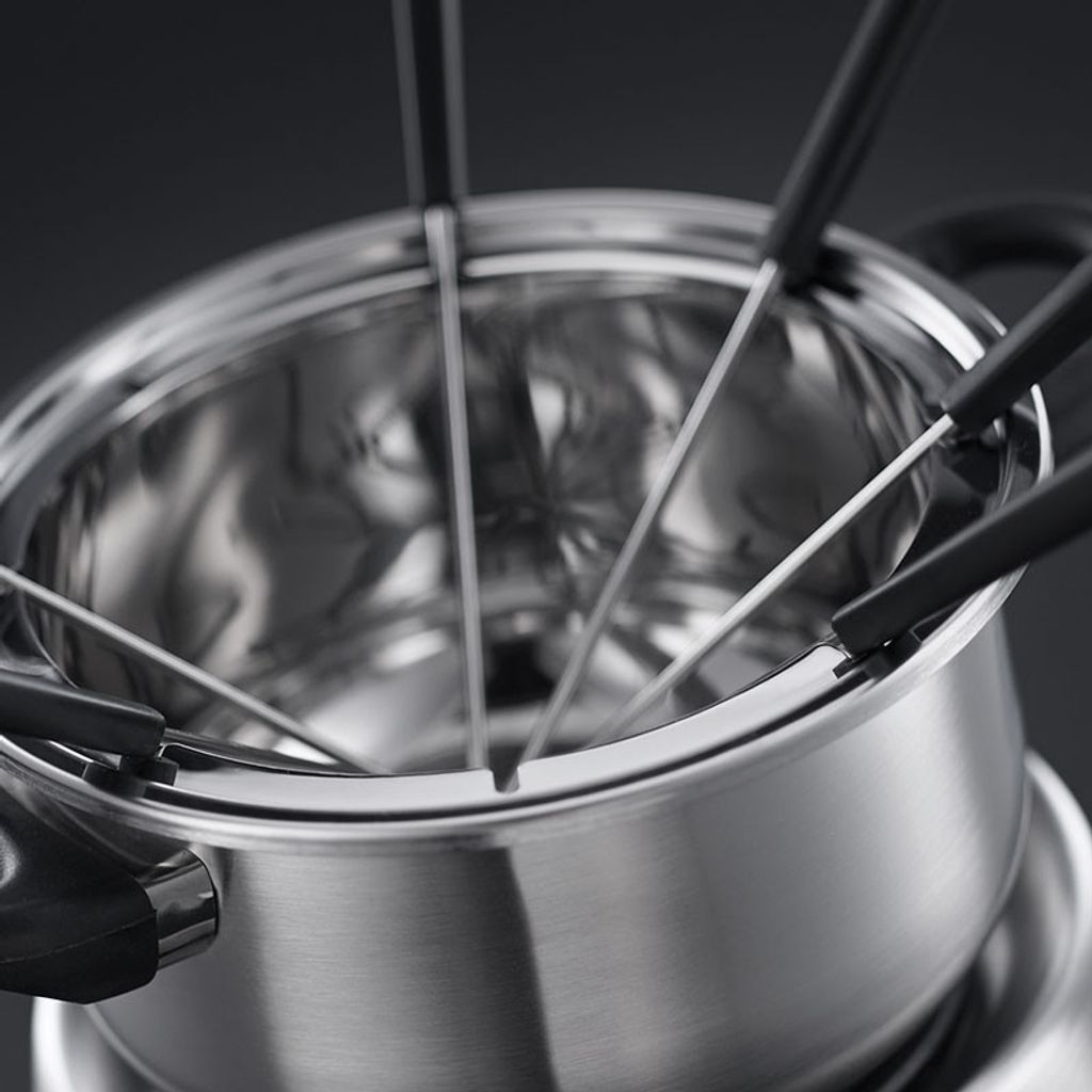 Med sin borstade rostfria yta och kompakta, moderna form passar fonduegrytan perfekt i varje kök. Den kraftfulla effekten på 1200W säkerställer snabb uppvärmning och jämn temperatur, så att du slipper vänta på att festen ska börja. Den justerbara termostaten låter dig enkelt kontrollera värmen beroende på vad du tillagar – smält choklad kräver precision, och den här maskinen levererar.