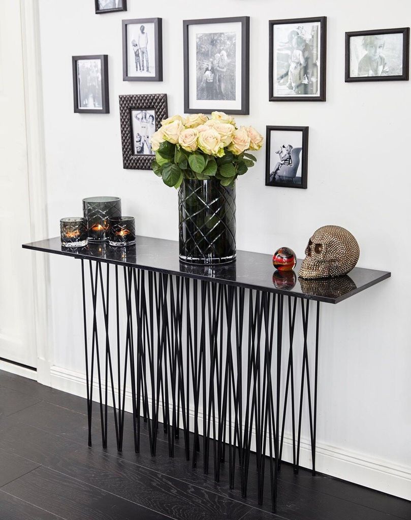 Detta sidobord är inte bara en visuell höjdpunkt i ditt vardagsrum eller hall, utan erbjuder även en praktisk avlastningsyta för dina dekorationer och tillhörigheter. Låt detta bord bli ett stilfullt blickfång i ditt hem!