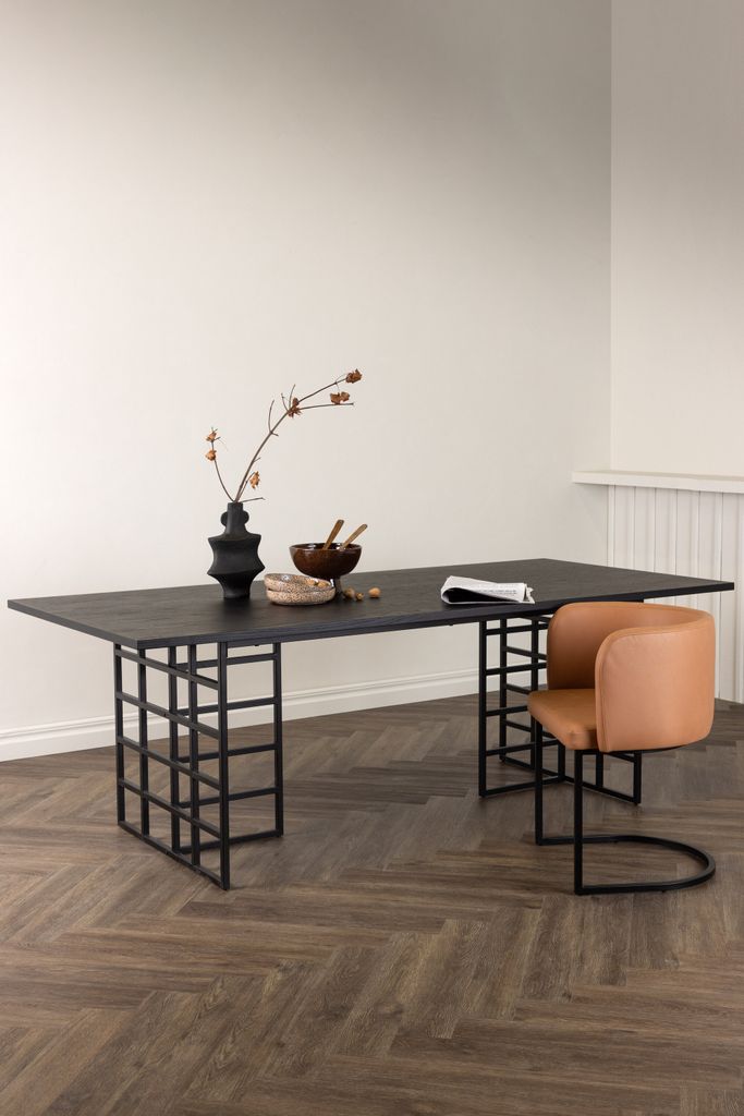 Upptäck Furniture Fashion Ystad Matbord, ett stilrent och trendsäkert val för ditt hem. Med sin svartsotiga rektangulära bordsskiva i MDF och ekfanér, kombinerar det elegans med hållbarhet. De två dekorativa stommarna i svart metall med industriell design ger bordet en unik karaktär och stabilitet.