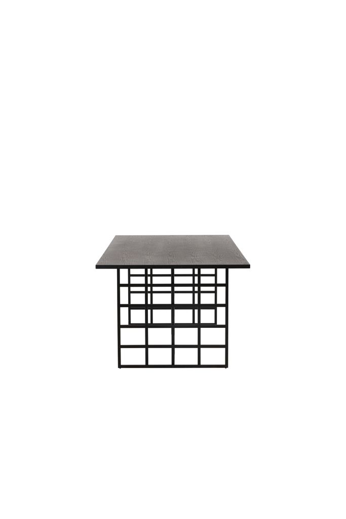 Trendsäkert matbord i svart med rektangulär bordsskiva i MDF och två industriella metallstommar.