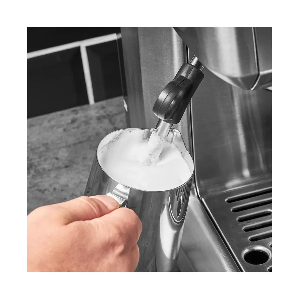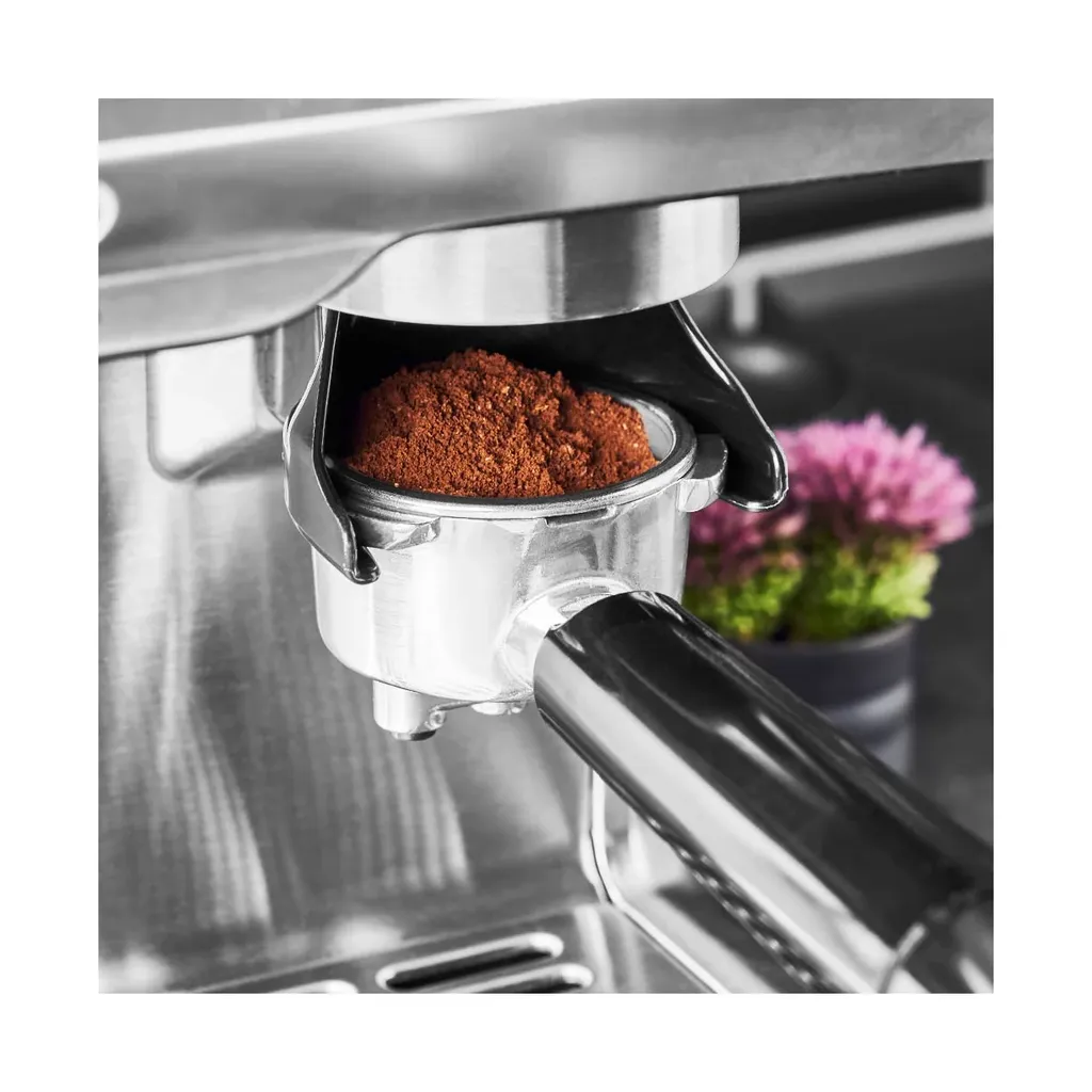 Medföljande tillbehör: espressotamper, filterinsatser, mjölkkanna, måttsked, rengöringsverktyg, vattenfilter