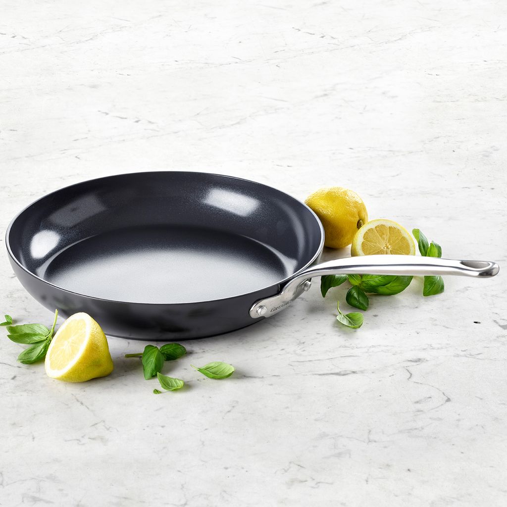GreenPan Barcelona stekpanna 30 cm är en modern klassiker som kombinerar stil med prestanda. Tillverkad i robust aluminium med Magneto-teknik för effektiv värmefördelning och en diamantförstärkt keramisk non-stick-beläggning (Thermolon™ Infinity Professional) som gör matlagningen både enkel och hållbar.