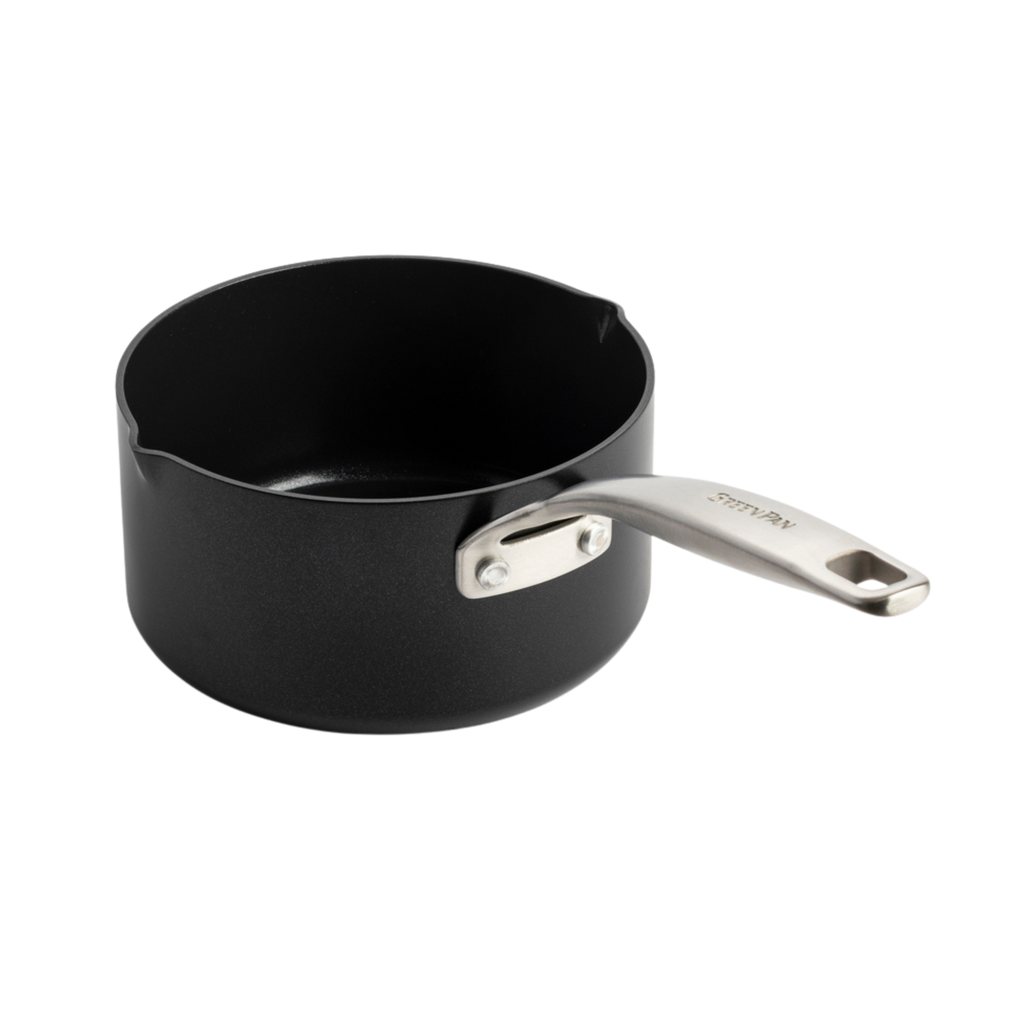 GreenPan Copenhagen kastrull 15 cm (1,5 l) är ett kompakt och mångsidigt tillskott i köket. Med praktiska dubbla hällpipar och en elegant, svart design passar den perfekt för att värma såser eller små portioner. Tillverkad i hållbart aluminium med Thermolon™ Infinity Pro keramisk non-stick-beläggning — exklusivt fri från PFAS. En trygg, stilren och funktionell gryta för vardagens matlagning.
