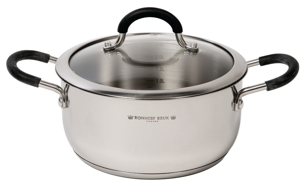 Ronneby Bruk, Rostfri Gryta 3 L med Ventilerat Glaslock – Silikonhandtag