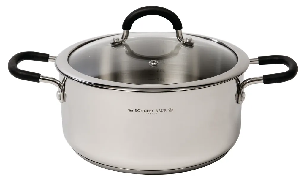 Ronneby Bruk, Rostfri Gryta 4 L – Med Ventilerat Glaslock & Silikonhandtag