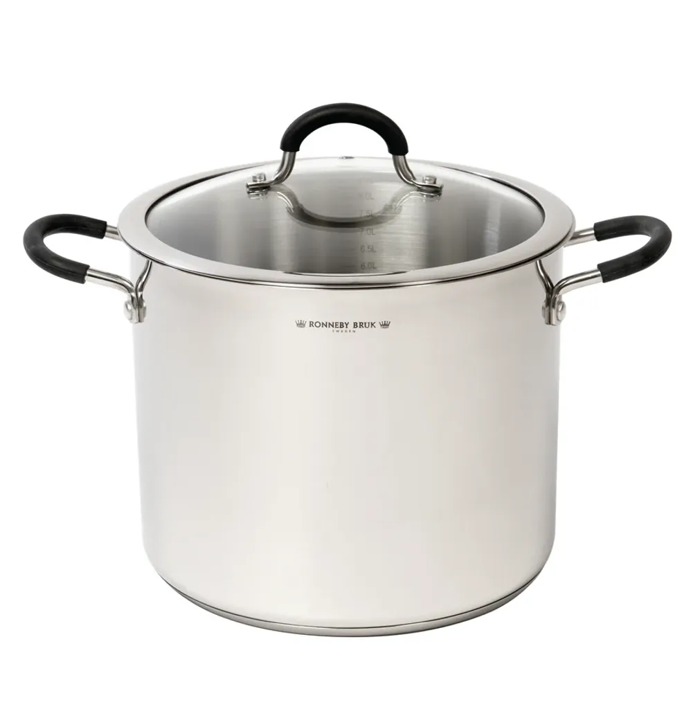 Ronneby Bruks rostfria gryta på hela 9 liter är det perfekta valet för dig som ofta lagar mat till många. Perfekt för soppor, pasta, grytor, buljonger och storkok – med kapacitet nog för både vardag och fest. Grytan är designad för effektiv matlagning med maximal volym.