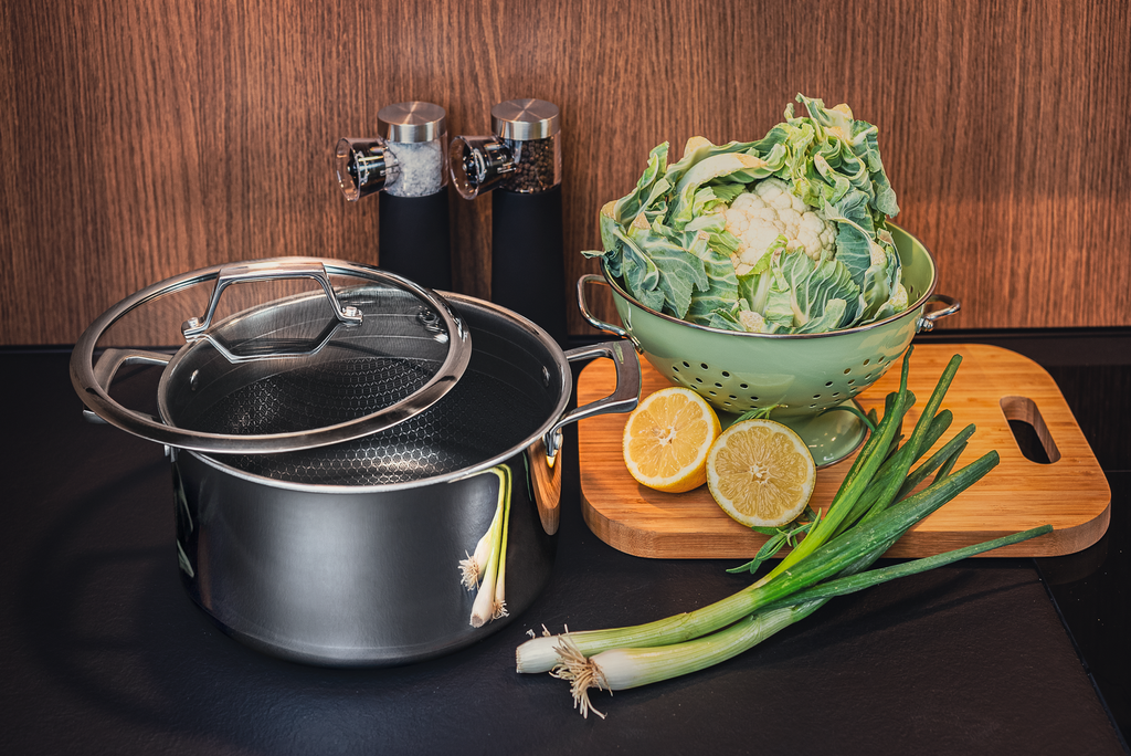 När matlagningen kräver volym, kontroll och prestanda är Hâws Santo gryta på 5,8 liter det självklara valet. Med sin generösa kapacitet och högkvalitativa konstruktion är den idealisk för långkok, soppor, grytor och andra smakrika rätter som behöver tid att utvecklas.