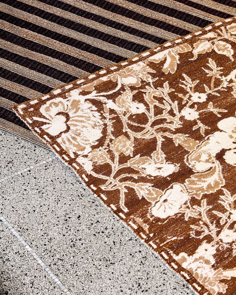 Handgjord matta i brun bomull & ull-blandning med subtil design, perfekt för ett inbjudande och tidlöst hem.