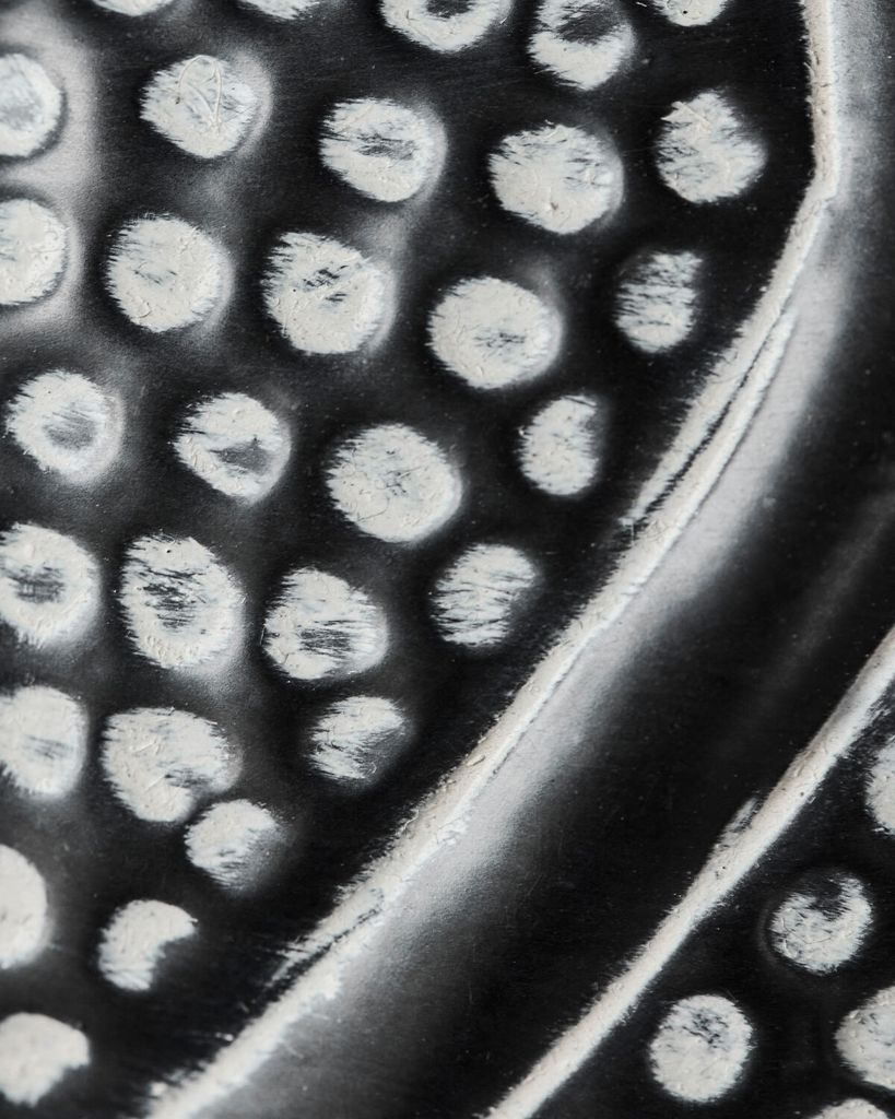 Förvandla ditt hem med den handgjorda Bloss vasen i svart. Dess distinkta reliefmönster och eleganta finish ger varje rum en unik konstnärlig touch.