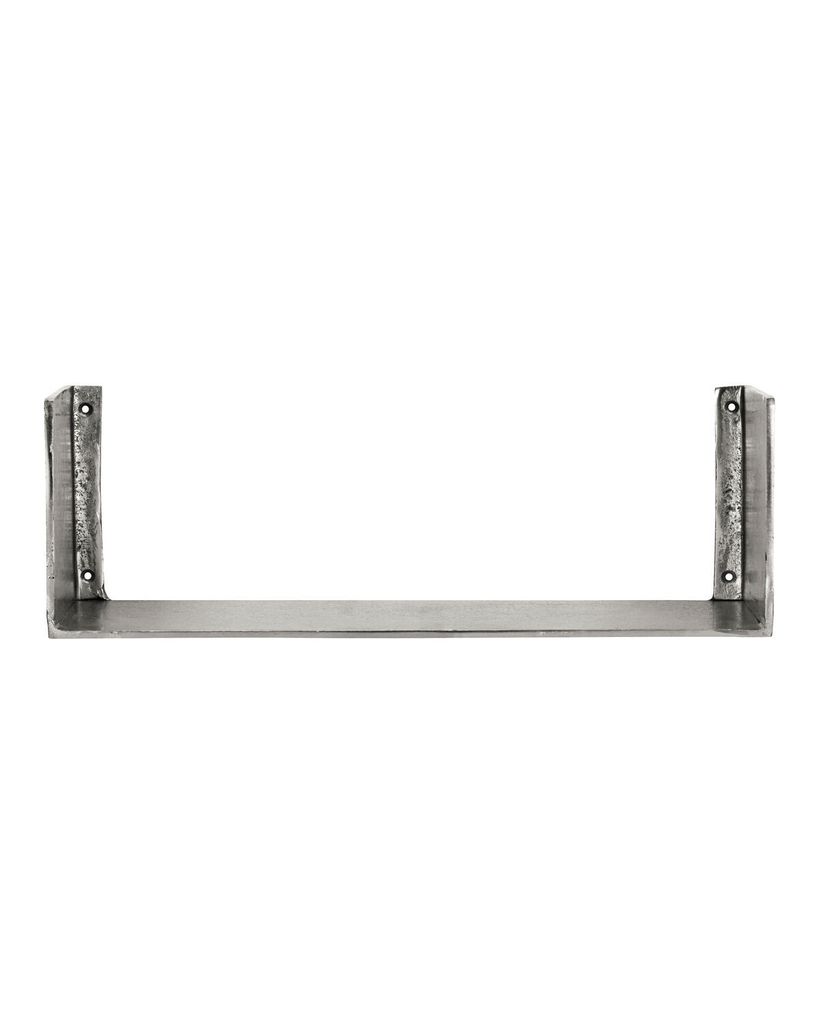 Handgjord hylla i aluminium med silverfinish och industriell design, perfekt för personlig stil.