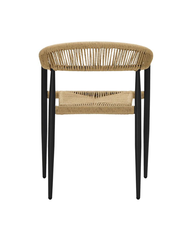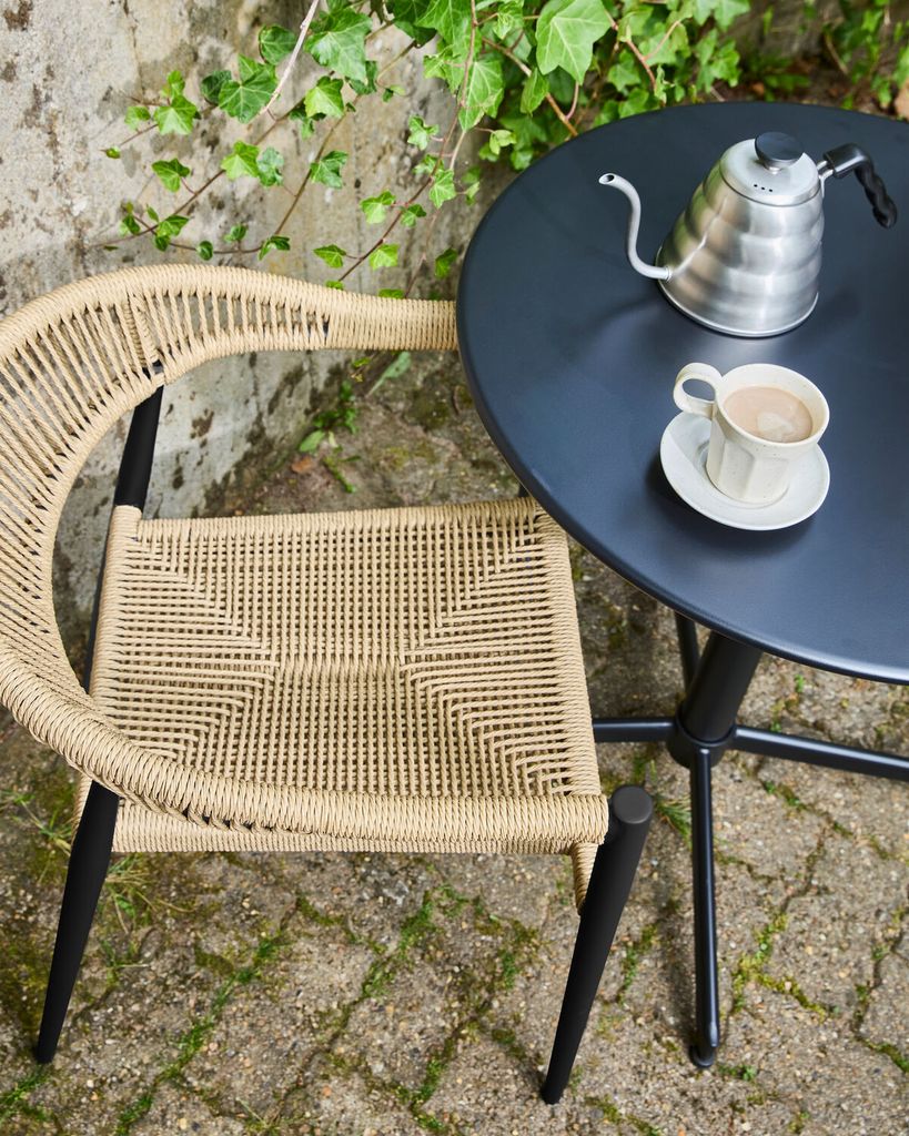 Elegant stol med svart aluminiumram och naturfärgad vävd sits. Tidlös design för både inne och ute.