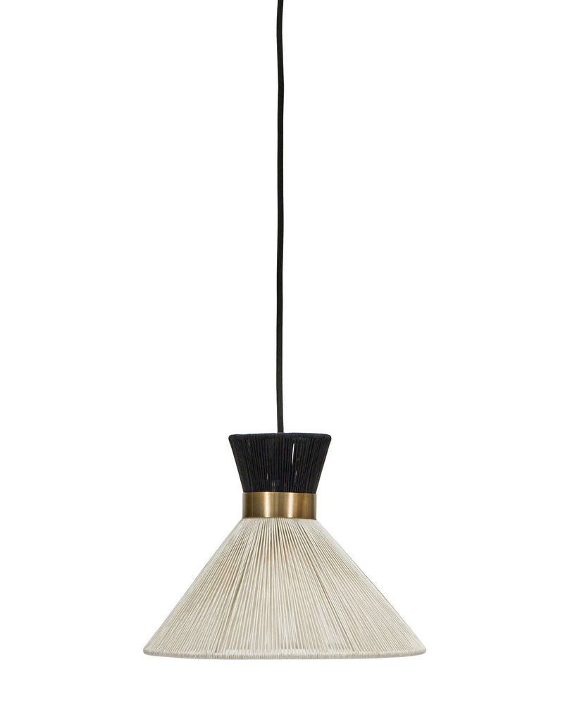 House Doctor Cord Lampa Svart är den perfekta kombinationen av modern design och tidlös elegans. Tillverkad av högkvalitativt järn och mässing, skapar denna lampa ett sofistikerat uttryck i varje rum. Den unika designen med offwhite och svarta polyestertrådar ger ett exklusivt intryck och kompletteras av en svart tygkabel på hela 3 meter, vilket ger flexibilitet i upphängningen. Med plats för en max 7 W LED-lampa ger den ett mjukt och inbjudande ljus, perfekt för både vardagsrum och matsal. Förhöj din inredning med denna stilrena och funktionella pendellampa.