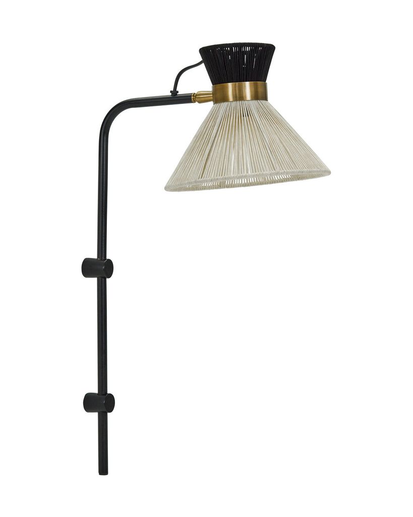 Uppgradera ditt hem med House Doctor Cord Vägglampa Svart, en sofistikerad lampa som kombinerar hållbarhet och stil. Tillverkad av robust järn och mässing, denna lampa har en unik skärm insvept i skimrande vita och svarta trådar som ger en mjuk och behaglig ljusspridning. Den integrerade 2,5 meters kabeln gör installationen enkel, och den passar perfekt med en E27, Max 7 W LED-lampa. Denna vägglampa är inte bara en ljuskälla utan även en konstnärlig detalj som ger en touch av elegans till vilket rum som helst.