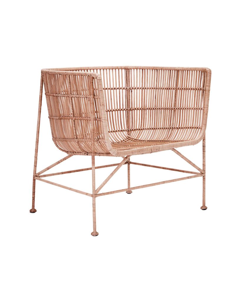 Stilren loungefåtölj i naturlig rotting och järnram. Förhöjer ditt hem med sin moderna och enkla design.
