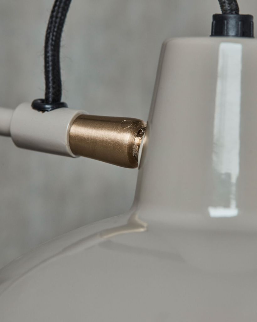 Upptäck House Doctor Desk Vägglampa i en sofistikerad grå nyans som kombinerar industriell charm med tidlös design. Lampans släta emaljfinish ger ett modernt uttryck och passar perfekt i alla rum, medan den 2,5 meter långa svarta tygkabeln erbjuder både flexibilitet och stil. Vägglampan är utrustad med en E14-sockel och stödjer en ljuskälla på upp till 25 W, vilket gör den idealisk för att lysa upp ditt hem med elegans och funktionalitet. Med dess subtila detaljer i mässing och robusta konstruktion, blir denna lampa en mångsidig inredningsdetalj som tillför både värme och stil.
